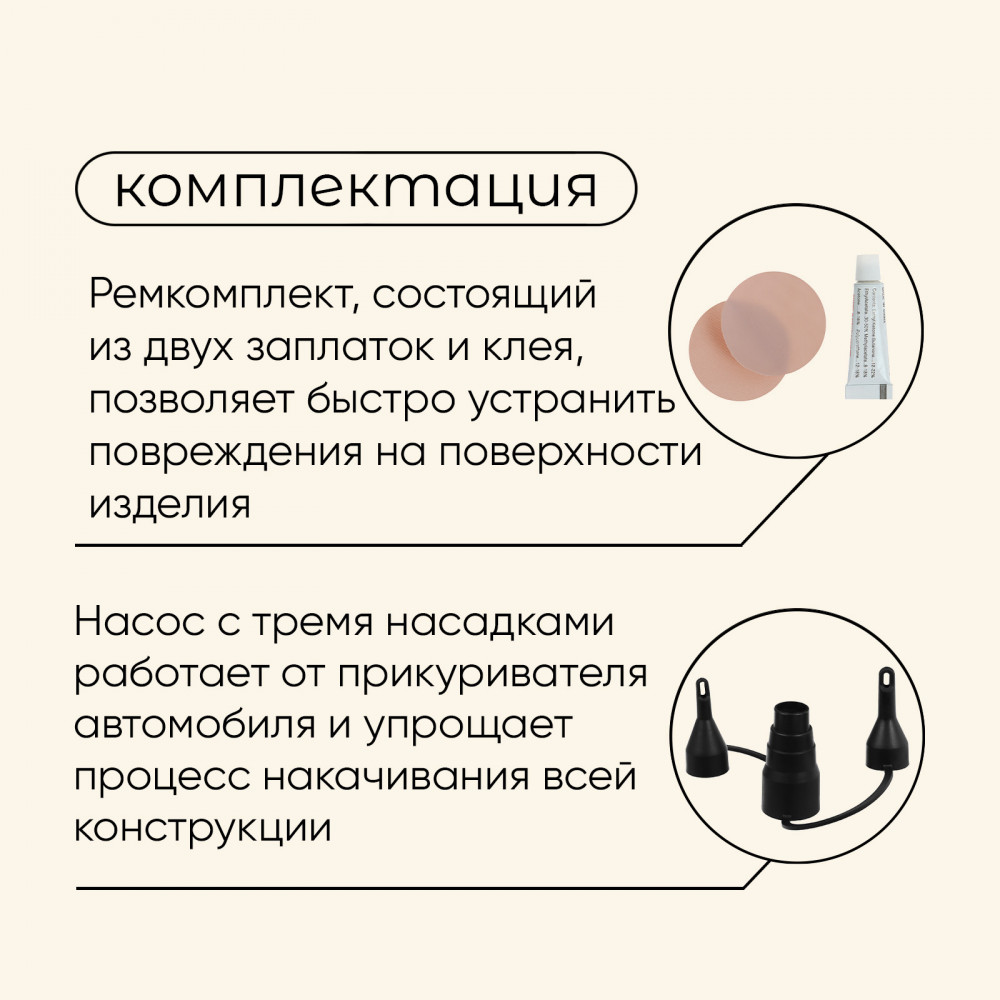 💳 Оплатить за товар можно при получении 🇰🇿 Есть бесплатная доставка по Казахстану от 1 дня 🎁 Копите бонусы с каждой покупки Надувной автомобильный матрас обеспечивает комфортный отдых и сон во время поездок на машине. Его можно установить в багажнике или на опущенных задних сиденьях автомобиля. В конструкции матраса предусмотрена специальная секция, которая размещается между сиденьями, что создаёт дополнительный комфорт. |