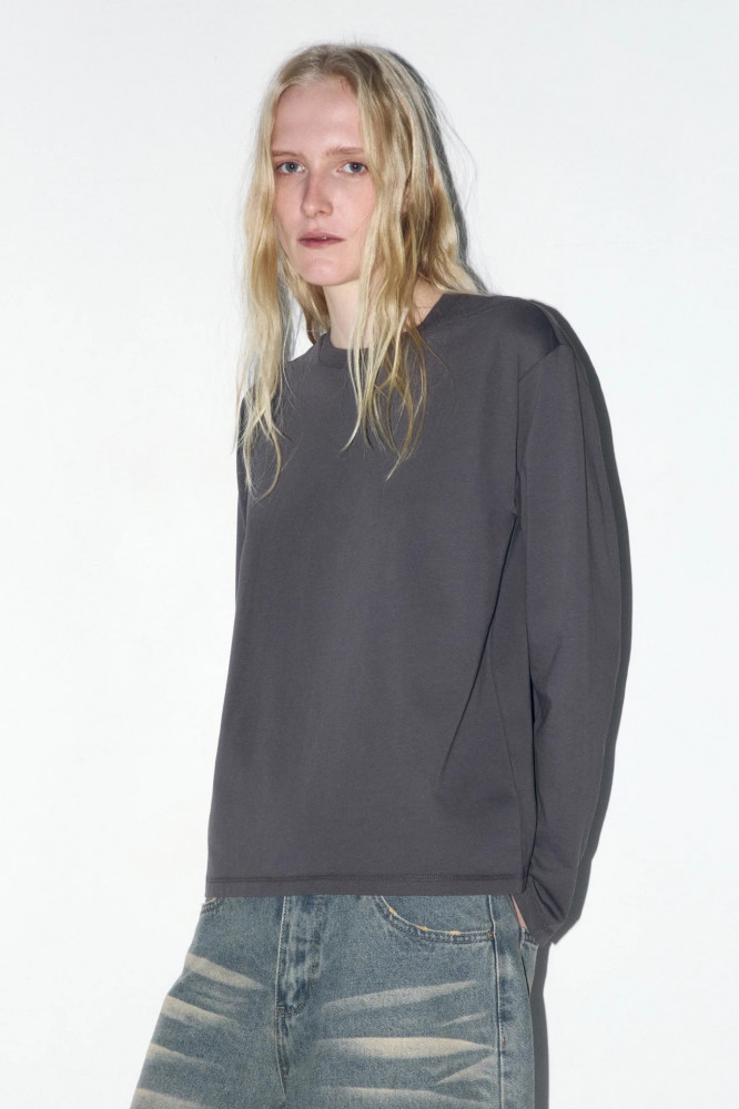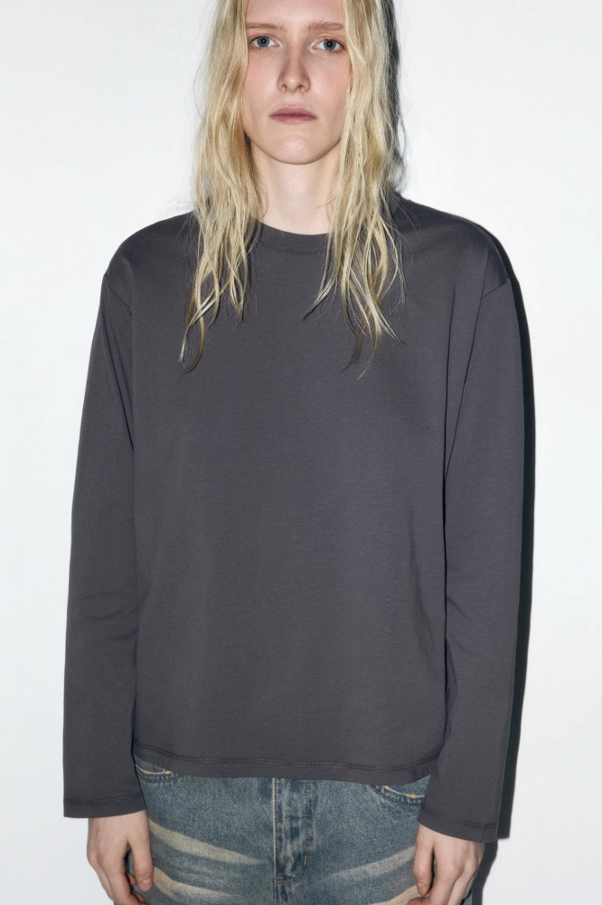 Легкая хлопковая футболка с длинными рукавами для суперудобных кэжуал-луков с любым низом на твой вкус. Разбавь свои повседневные, спортивные, офисные, школьные или уличные аутфиты стильным базовым лонгсливом в практичном темном оттенке, который станет неотъемлемой частью твоего гардероба благодаря его универсальности. Свободный хлопковый оверсайз-джемпер для расслабленных повседневных луков, в которых тебе будет максимально комфортно как в жаркую, так и в прохладную погоду.