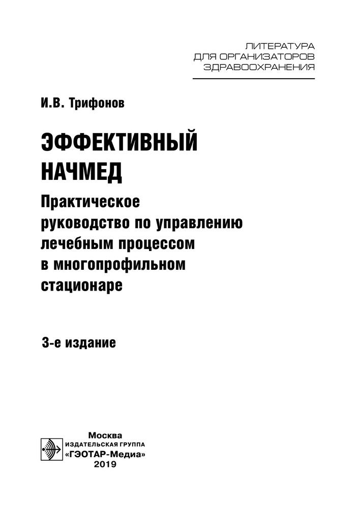 Эффективный начмед. Практическое руководство по управлению лечебным процессом в многопрофильном стационареВ данный момент этот товар отсутствует в продаже. Возможно, у нас найдется аналогичный или похожий товар здесь. Серия: Литература для организаторов здравоохранения В книге описаны приемы и методы работы организатора здравоохранения по обеспечению высокого качества лечения в многопрофильном стационаре. Предложены программы действий по контролю качества оказания медицинской помощи на основных этапах организации лечебного процесса. Основное внимание уделено тактическим и организационным вопросам, решаемым в ходе рутинных мероприятий: утренней конференции, обхода отделений, проведения заседаний различных контрольных комиссий. Материалы книги помогут также при планировании деятельности в системе ОМС. Издание предназначено организаторам здравоохранения, врачам хирургических специальностей. |