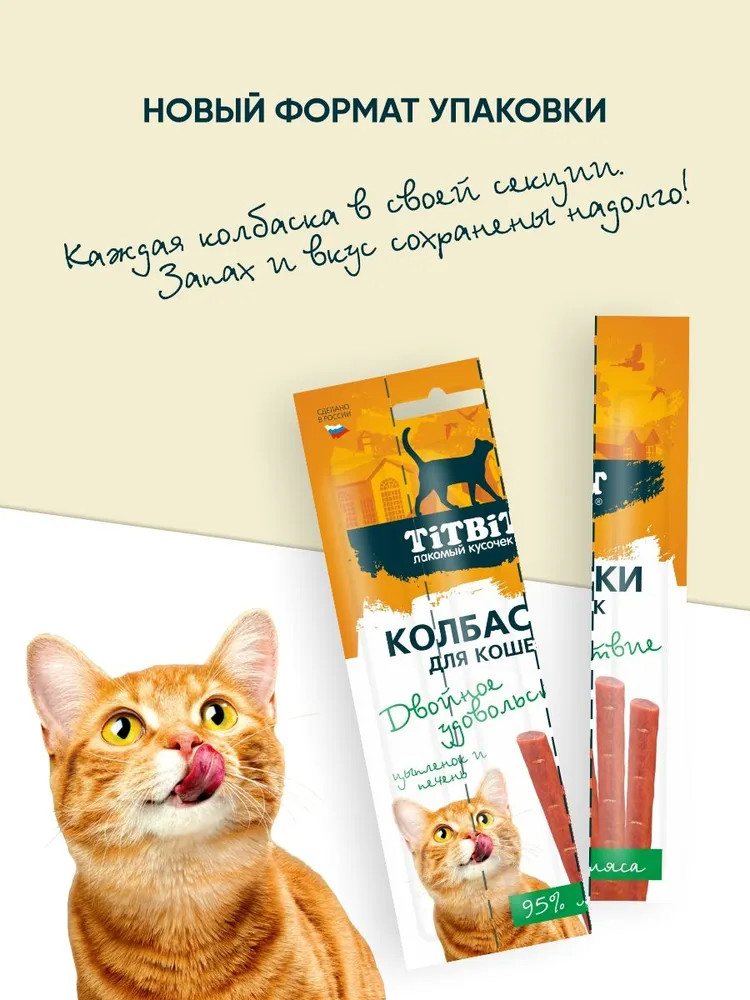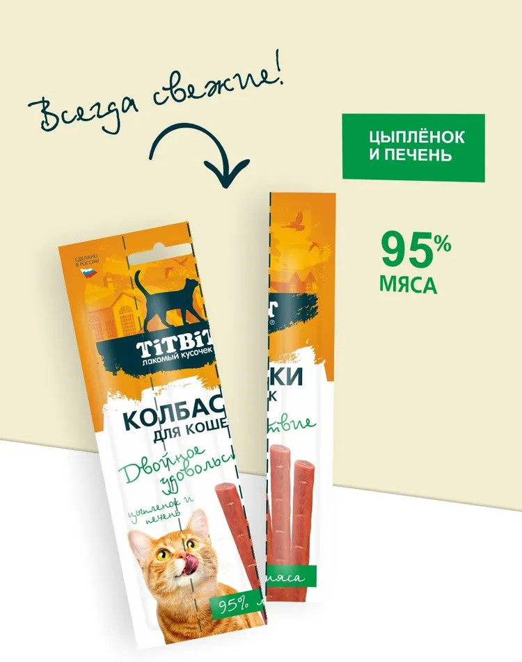 TiTBiT Лакомство для кошек «Колбаски с цыплёнком и печенью»-20% +21