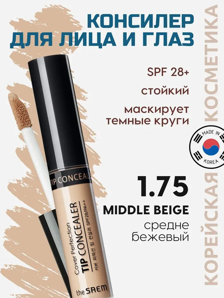 The Saem Жидкий консилер «Cover Perfection Tip Concealer», оттенок 1.75 Middle Beige