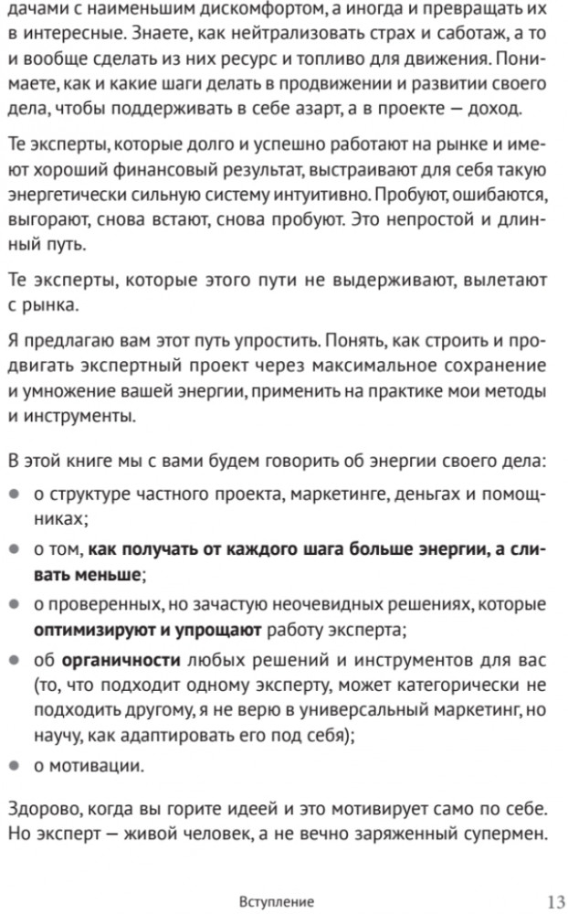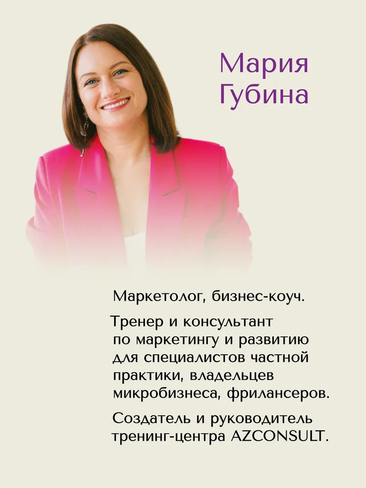 💳 Оплатить за товар можно при получении 🇰🇿 Есть бесплатная доставка по Казахстану от 1 дня 🎁 Копите бонусы с каждой покупки Серия: Бизнес-психология (твердый переплет) Мария Губина, тренер и консультант по маркетингу и развитию для малого бизнеса, в своей книге рассказывает, как строить и продвигать экспертный проект через максимальное сохранение и умножение энергии. Вы узнаете о структуре частного проекта, маркетинге, деньгах и помощниках; о том, как получать от каждого шага больше энергии, а тратить меньше; о проверенных, но зачастую не очевидных решениях, которые оптимизируют и упрощают работу эксперта; о мотивации эксперта. Особое внимание уделяется наиболее частым ошибкам, которые совершают новички от этапа постановки целей и до неправильного финансового планирования. Книга научит получать удовольствие и заряжаться от собственного дела, которое будет подпитывать вас энергией, азартом и приносить доход. Издание адресовано собственникам и владельцам бизнеса, начинающим и опытным экспертам, которые желают совершить бизнес-прорывы, оставаясь собой, следуя своим целям и сохраняя свои ценности. |