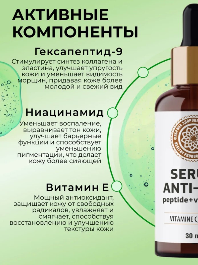 Фабрика Здоровых Продуктов Сыворотка для лица против морщин с пептидами «Serum anti-age»