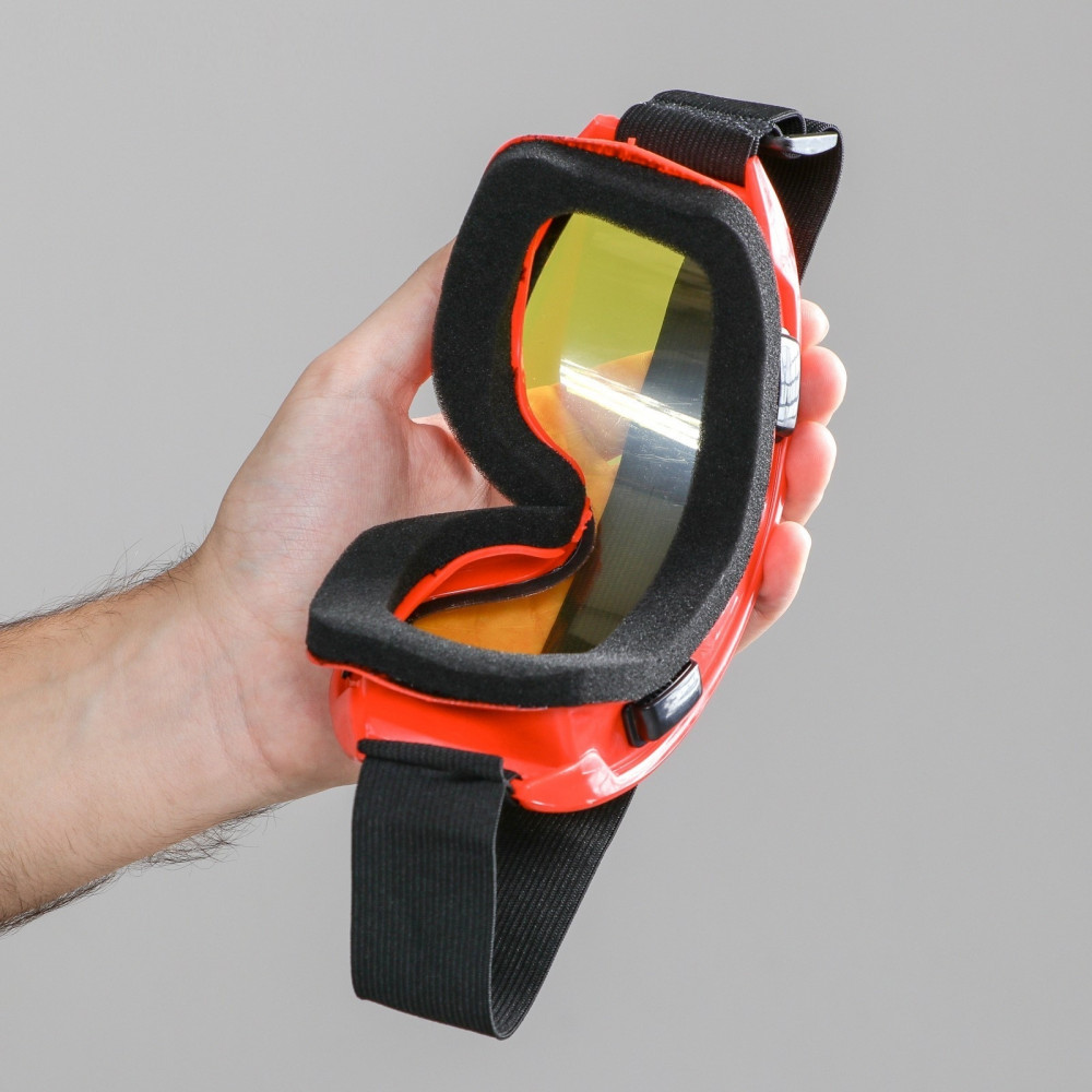 Корпус очков сделан из прочного, легкого и мягкого пластика, не теряющего свойств при минусовых температурах, что делает очки устойчивыми к механическим повреждениям. Линза из прочного поликарбоната полностью защищает глаза от ветра, воды, пыли. Однослойный поролоновый уплотнитель (между маской и Вашим лицом) для максимального комфорта, и защиты от влаги. Регулируемый ремешок позволяет использовать очки как самостоятельно, так и с большинством видов мотошлемов. Поролоновая прокладка обеспечит отличное прилегание к лицу, исключит попадание пыли или снега.