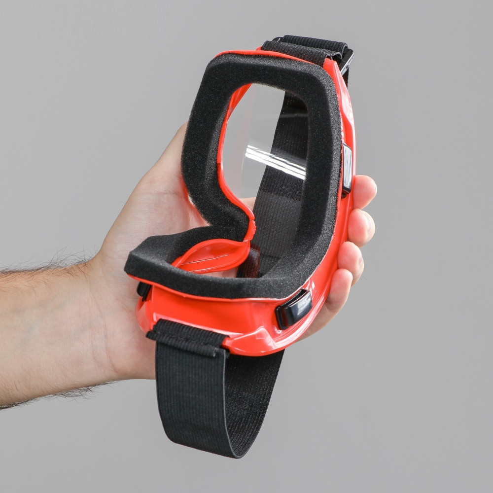 Корпус очков сделан из прочного, легкого и мягкого пластика, не теряющего свойств при минусовых температурах, что делает очки устойчивыми к механическим повреждениям. Линза из прочного поликарбоната полностью защищает глаза от ветра, воды, пыли. Однослойный поролоновый уплотнитель (между маской и Вашим лицом) для максимального комфорта, и защиты от влаги. Регулируемый ремешок позволяет использовать очки как самостоятельно, так и с большинством видов мотошлемов. Поролоновая прокладка обеспечит отличное прилегание к лицу, исключит попадание пыли или снега.