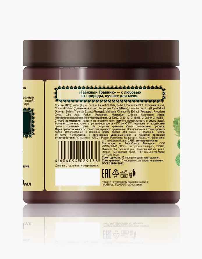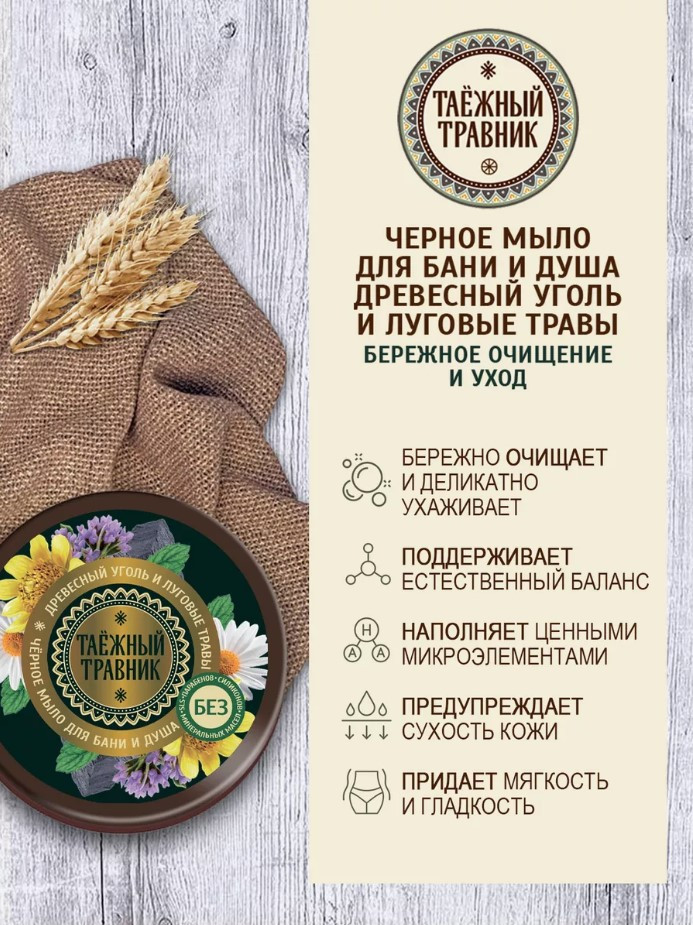 Aromat cosmetic Черное мыло для бани и душа для волос и тела «Древесный уголь и луговые травы»