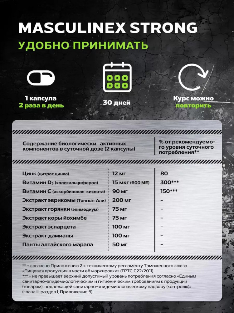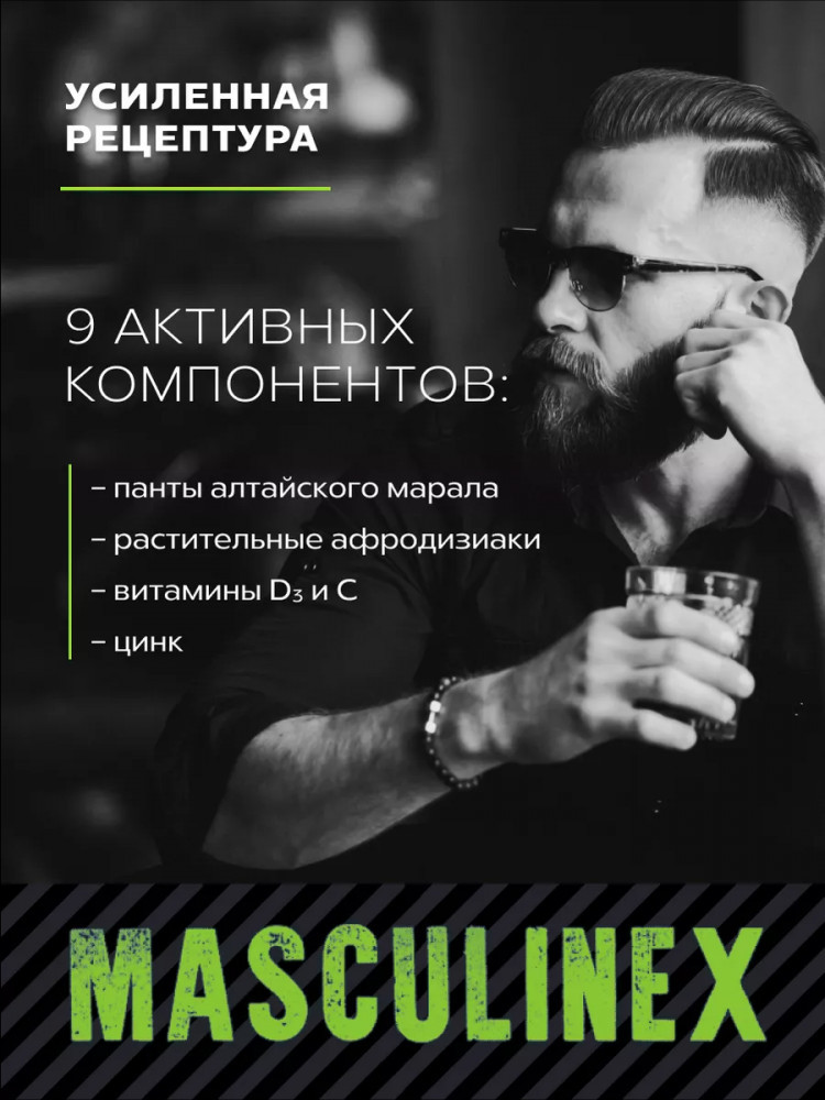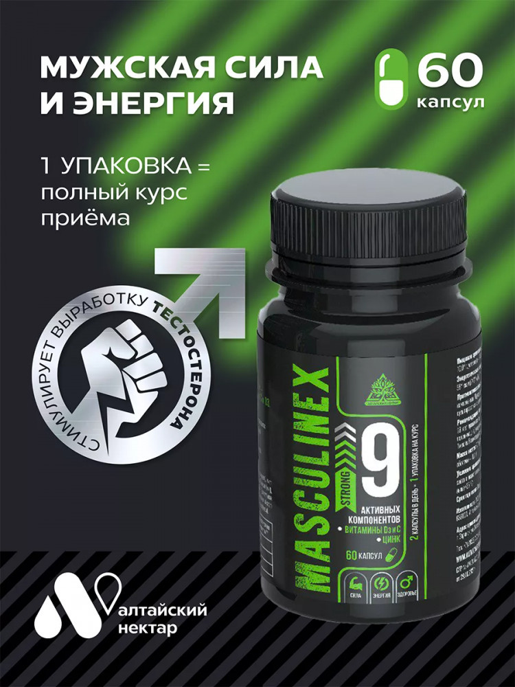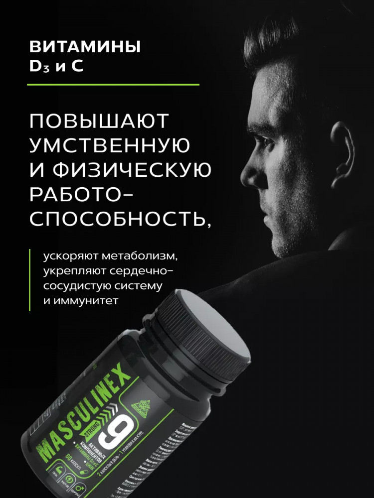 БАД «БАД для мужчин „Masculinex Strong“» способствует повышению работоспособности, физической силы и выносливости, усилению иммунной защиты и адаптационных возможностей. Стабилизации нервной системы. Нормализации репродуктивных функций мужского организма.