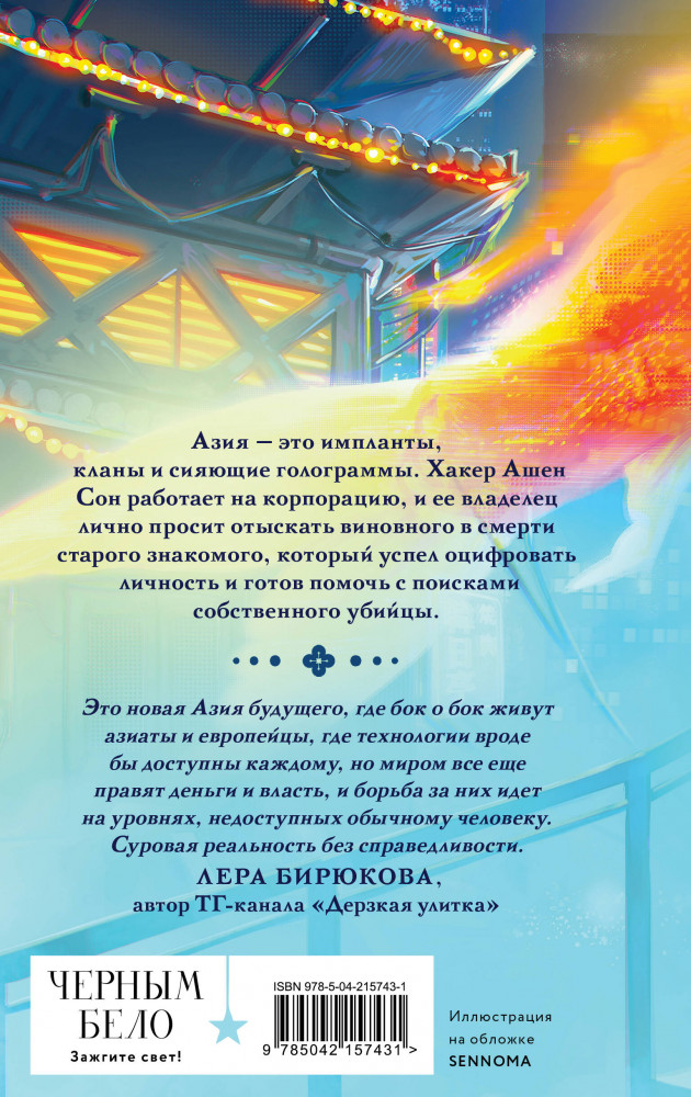 💳 Оплатить за товар можно при получении 🇰🇿 Есть бесплатная доставка по Казахстану от 1 дня 🎁 Копите бонусы с каждой покупки Серия: Черным-бело. Азия Азия — это импланты, кланы и сияющие голограммы. Хакер Ашен Сон работает на корпорацию, и ее владелец лично просит отыскать виновного в смерти старого знакомого. Который успел оцифровать личность и готов помочь с поисками собственного убийцы. |