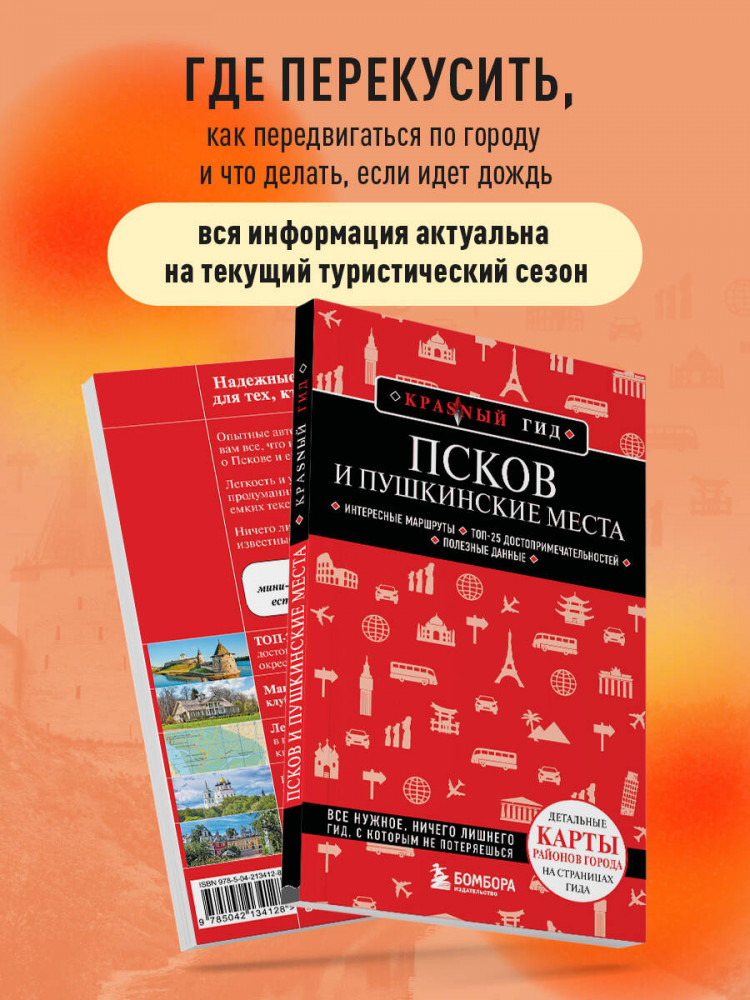 💳 Оплатить за товар можно при получении 🇰🇿 Есть бесплатная доставка по Казахстану 🎁 Копите бонусы с каждой покупки Серия: Красный гид (обложка) Перед вами гид по Пскову — одному из самых популярных направлений этого года. В нем содержится актуальная и полезная информация о городе и Пушкинских горах, советы, как лучше провести первый и второй дни, куда сходить, а также Топ-25 главных достопримечательностей. Здесь вы найдете описания самых интересных мест, а сориентироваться на местности помогут готовые маршруты и карты, расположенные на страницах гида. Наш путеводитель станет вашим незаменимым спутником в путешествии по Пушкинским местам. |