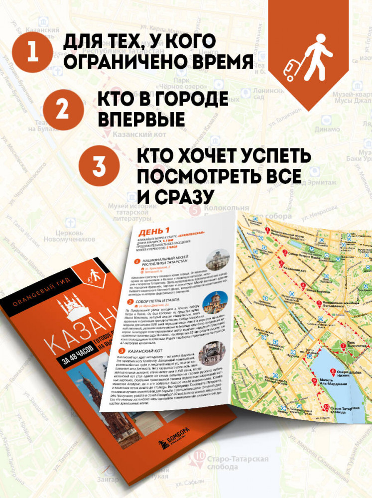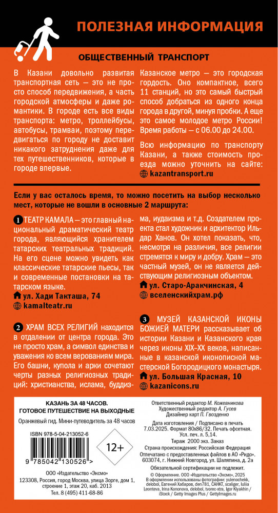Казань за 48 часов. Готовое путешествие на выходныеВ данный момент этот товар отсутствует в продаже. Возможно, у нас найдется аналогичный или похожий товар здесь. Серия: Оранжевый гид. Мини-путеводитель за 48 часов Казань — невероятно живописный город, в котором соединились богатое культурное наследие и национальный колорит. Город, бывший некогда столицей Казанского ханства, теперь является столицей Республики Татарстан. Мини-путеводитель «Казань за 48 часов» — идеальное решение для тех, кто ограничен по времени, но хочет посмотреть в столице Татарстана как можно больше. В нем собраны самые знаковые достопримечательности, которые стоит увидеть, а также лучшие рестораны и кафе, где можно вкусно поесть. Мы детально продумали каждый шаг за вас, чтобы вы могли максимально насладиться колоритной Казанью! Просто следуйте рекомендациям, наслаждайтесь атмосферой города и открывайте для себя Казань! |