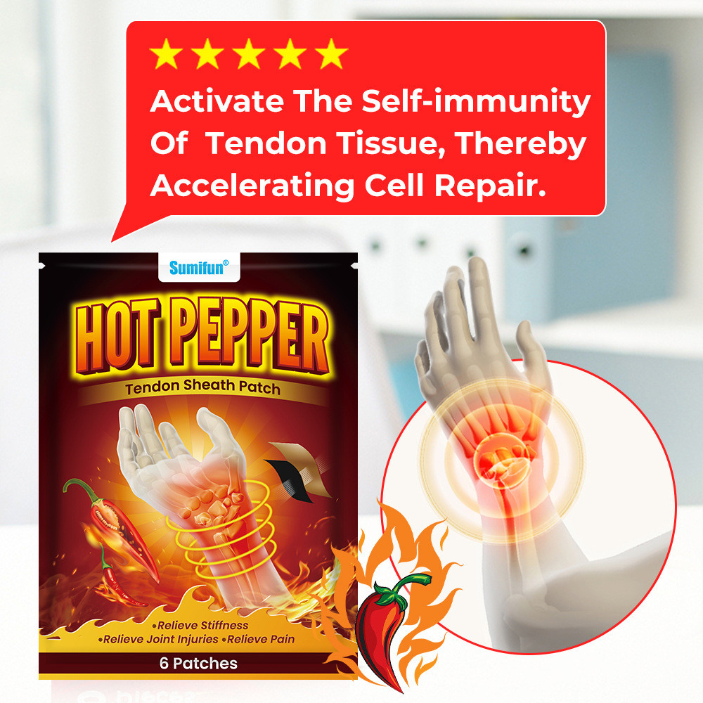 Противовоспалительные обезболивающие разогревающие пластыри Hot Pepper Sumifun — это эффективное средство для снятия боли, воспаления и скованности в области запястий, локтей, коленей и других суставов. Изготовленные по технологии дальнего инфракрасного прогрева, они помогают улучшить кровообращение, активизировать иммунные процессы и ускорить восстановление тканей сухожилий. Благодаря уникальному составу и механизму действия они улучшают кровообращение, снимают отечность и скованность, а также ускоряют восстановление поврежденных тканей.