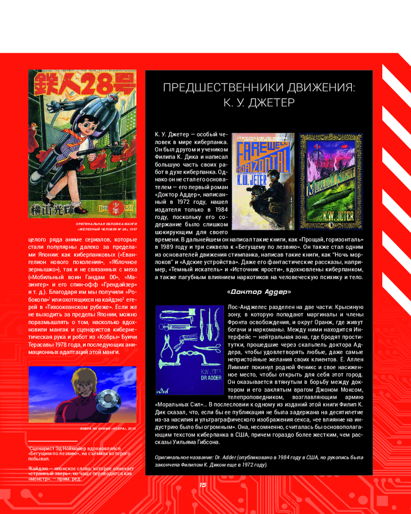 Киберпанк. Артбук по мирам «Бегущего по лезвию», «Акиры» и других фантастических шедевровСтефани Шапталь, Сильвен Навроцки, Жан Зейд В данный момент этот товар отсутствует в продаже. Возможно, у нас найдется аналогичный или похожий товар здесь. Серия: Фэнтезийные миры. Узнай больше о любимых вселенных! «Акира», «Бегущий по лезвию», «Черное зеркало», Cyberpunk 2077 и многие другие проекты уже не первое десятилетие пытаются предугадать будущее. Научная фантастика не только развлекает нас, но и пытается предсказать последствия того мира, в котором мы живем. Киберпанк — ответ на стремительно меняющийся мир конца XX и XXI веков. Компьютеры становятся доступнее, и все чаще звучит вопрос: «А не заменят ли они нас»? Внутри этого яркого иллюстрированного артбука вы найдете полное исследование жанра, а также огромное количество кадров из культовых фильмов, аниме и видеоигр. Кроме того, в книге представлены архивные афиши, обложки книг и другие материалы об одном из самых значимых культурных явлений современности. Идеальный подарок для каждого поклонника этого жанра! |