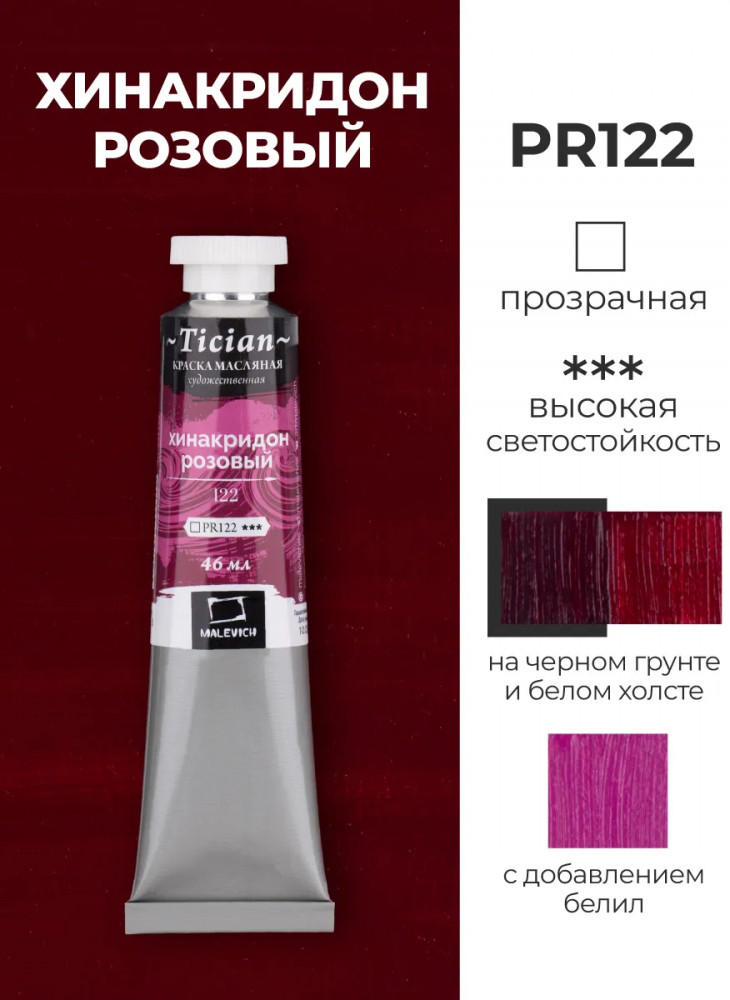 МалевичЪ Краска масляная художественная, 122 хинакридон розовый