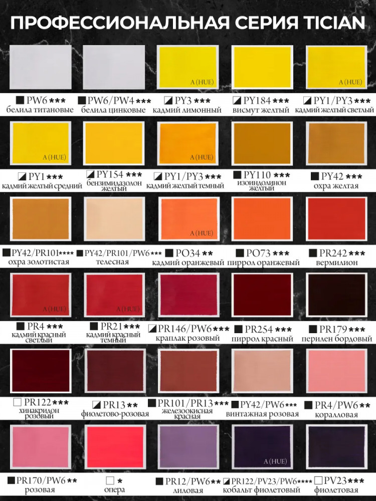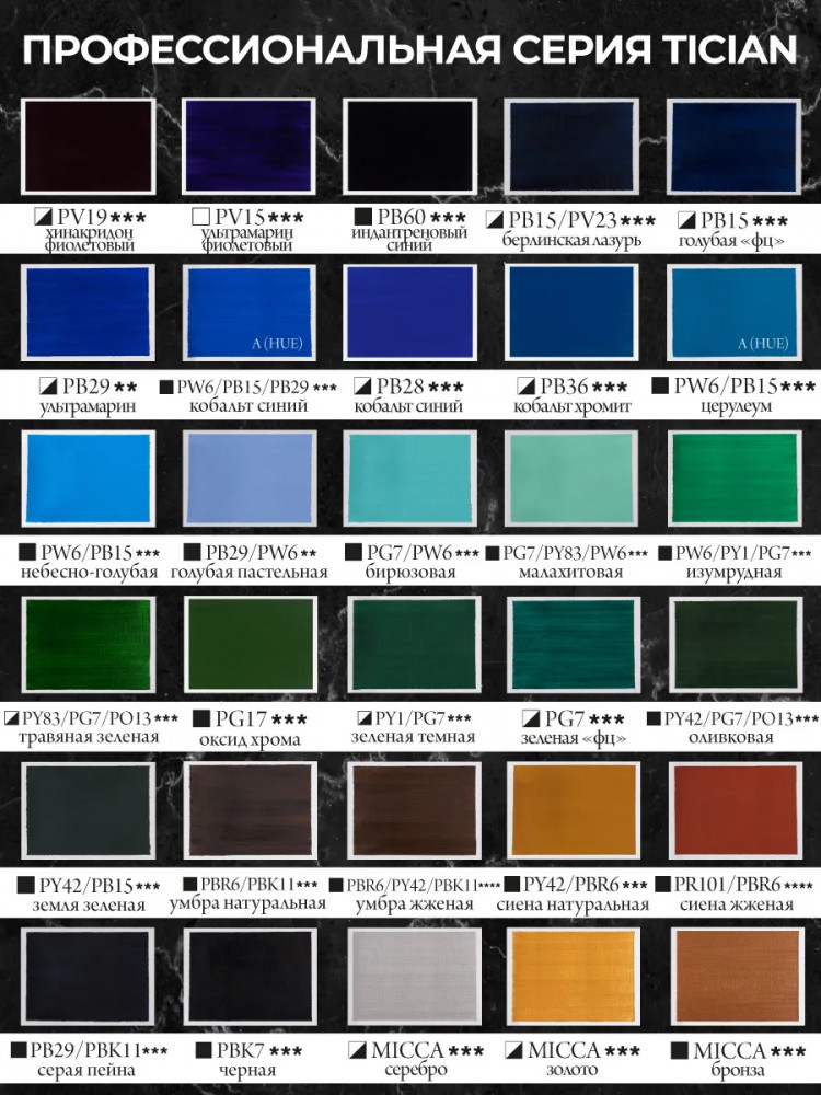 Было бы хорошо, если б вы выложили палитру самих красок. Цвет на этикетке на сайте один, на этикетке при покупке другой, а в реальности третий.