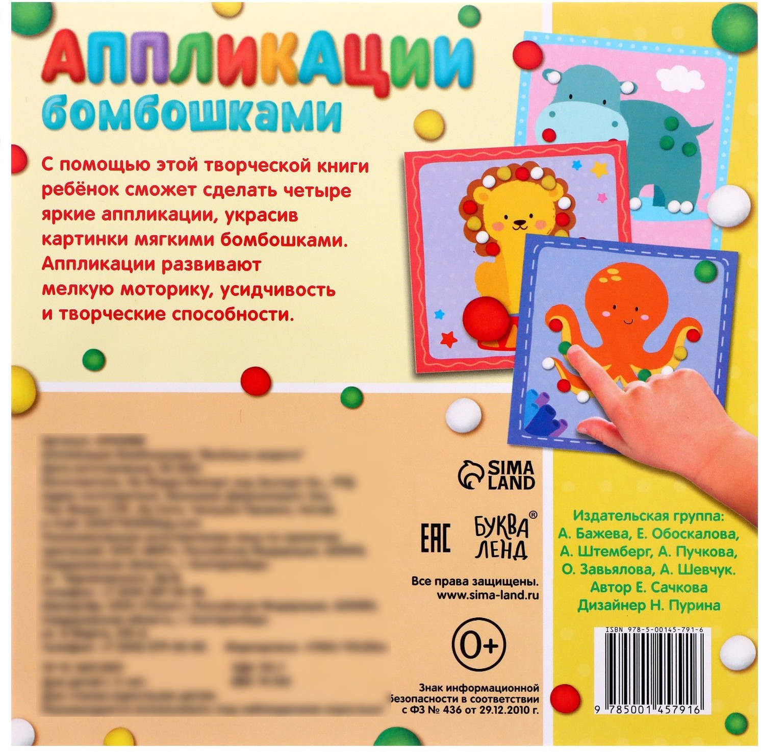 💳 Оплатить за товар можно при получении 🇰🇿 Есть бесплатная доставка по Казахстану от 1 дня 🎁 Копите бонусы с каждой покупки Серия: Аппликации с доп. элементами Эта творческая книга поможет малышу создать яркие аппликации. Ребёнок украсит картинки мягкими бомбошками и наклейками. Готовую работу можно вырезать из книги, подписать картинку на обороте и подарить близким. Такое творчество развивает моторику, внимание, усидчивость и тренирует эстетический вкус. Бомбошки крепятся к бумаге на клей для работы с текстилем (в комплект не входит). Обратите внимание, что помпончики в наборе разноцветные. Для выполнения аппликации выбирайте контрастные сочетания — не обязательно искать соответствие оттенкам на картинках. Такая игра благотворно влияет на развитие фантазии у детей |