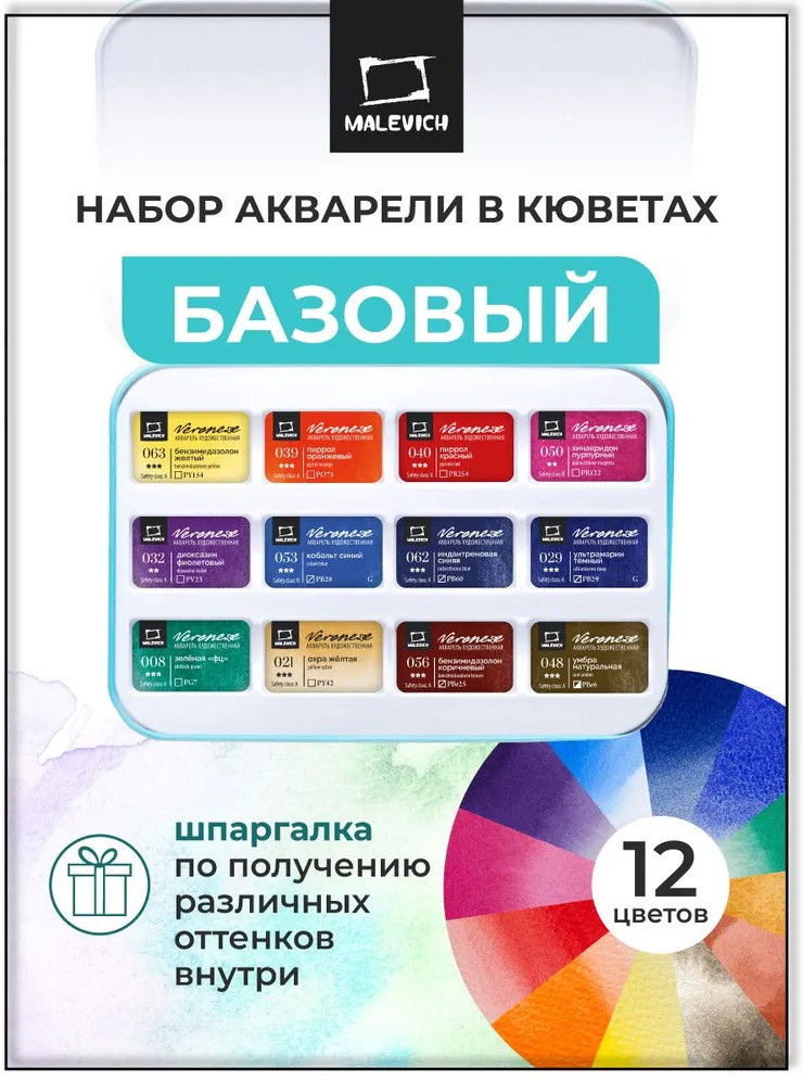 МалевичЪ Набор акварели в кюветах «Базовый»-20% +251