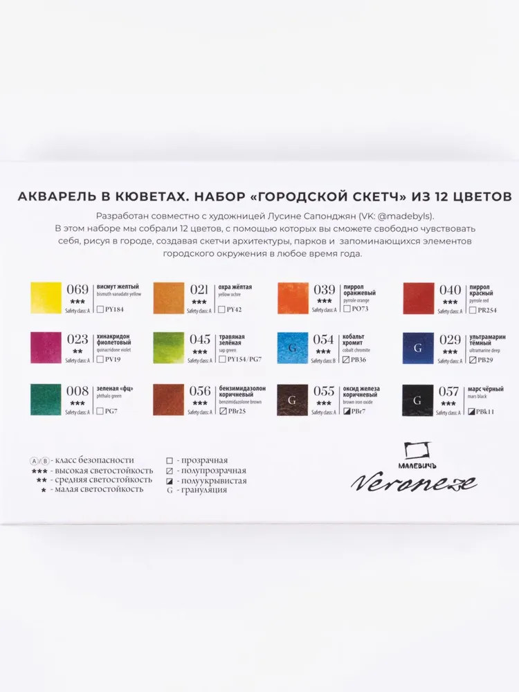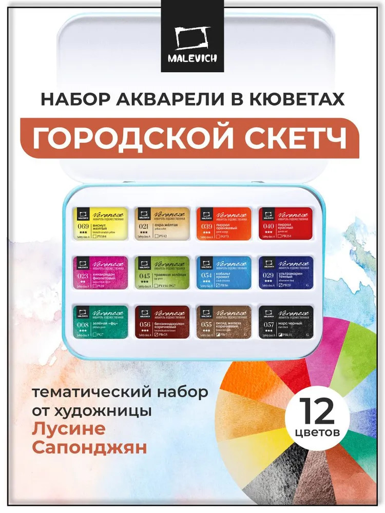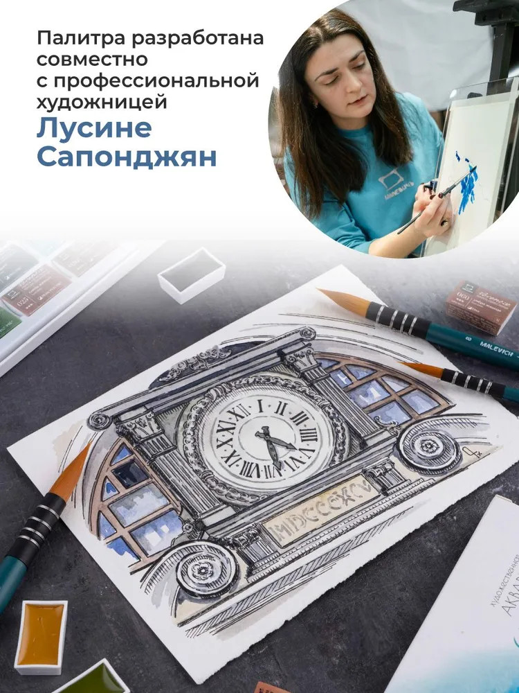 МалевичЪ Набор акварели в кюветах «Городской скетч»-20% +174