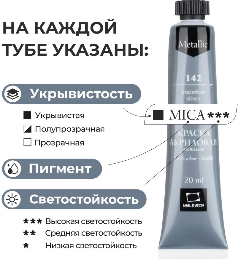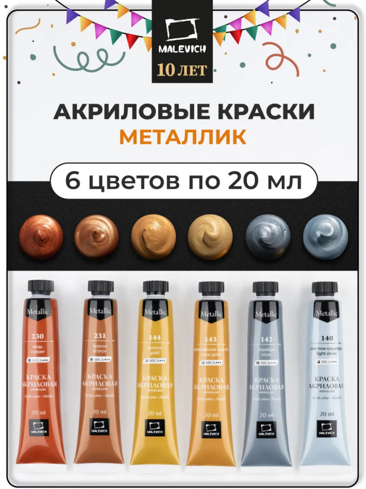 МалевичЪ Набор акриловых красок «Металлик»-35% +21