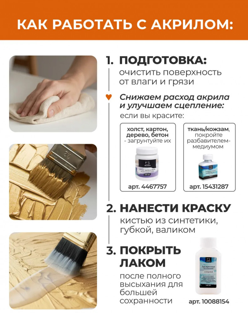 💳 Оплатить за товар можно при получении 🇰🇿 Есть бесплатная доставка по Казахстану от 1 дня 🎁 Копите бонусы с каждой покупки Серия: Matisso Художественные акриловые краски с металлическим эффектом отлично имитируют поверхность популярных металлов. Подходят для большинства поверхностей, таких как бумага, дерево, пластик, гипс, бетон, стекло, металл и пр., но поверхность перед работой необходимо подготовить – загрунтовать или обезжирить. После высыхания краски устойчивы к влаге и солнечному свету. Можно использовать в художественных, а также в декоративно-прикладных целях. |