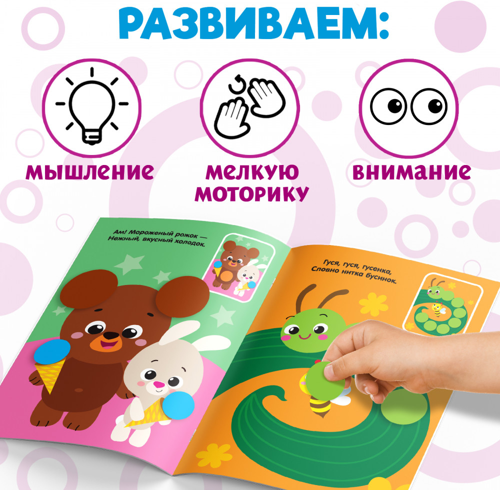 💳 Оплатить за товар можно при получении 🇰🇿 Есть бесплатная доставка по Казахстану от 1 дня 🎁 Копите бонусы с каждой покупки Серия: Книжки с наклейками кружочками Развивающие наклейки-кружочки пригодятся при обучении малышей важным навыкам. Книга «Наклей по образцу» направлена на тренировку цветовосприятия, запоминание оттенков и понятий «большой — маленький». Такой вид творчества позволяет детям развивать мелкую моторику, пространственное и логическое мышление, а также тренировать усидчивость и аккуратность. |
