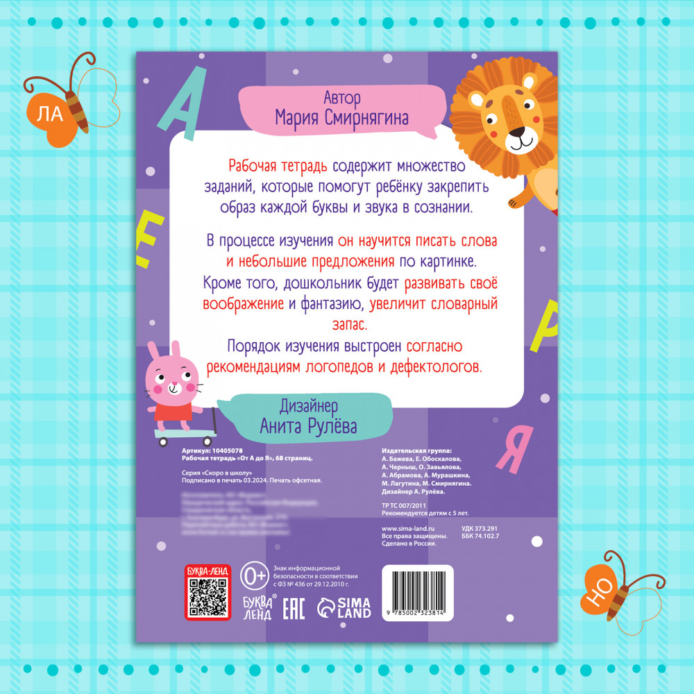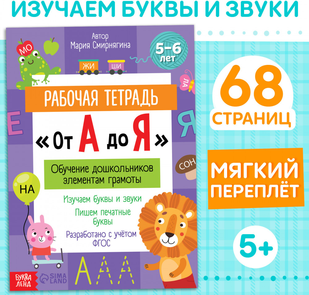 💳 Оплатить за товар можно при получении 🇰🇿 Есть бесплатная доставка по Казахстану от 1 дня 🎁 Копите бонусы с каждой покупки Серия: Тренажер для начальной школы Рабочая тетрадь «От А до Я» — отличный инструмент для развития ключевых навыков у ребёнка. Издание помогает малышу освоить буквы, научиться читать и развивать память. Материалы подобраны с учётом возрастных особенностей детей от 5 лет, что делает её полезным помощником в подготовке к школе. |