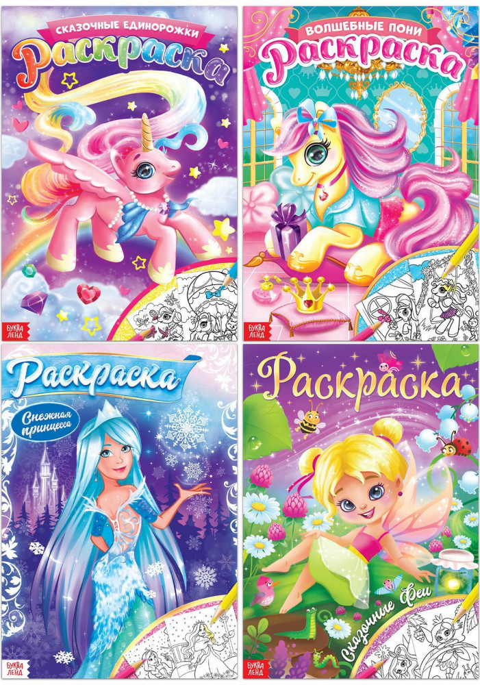 Комплект из 4 раскрасок «Волшебные рисунки»-25%