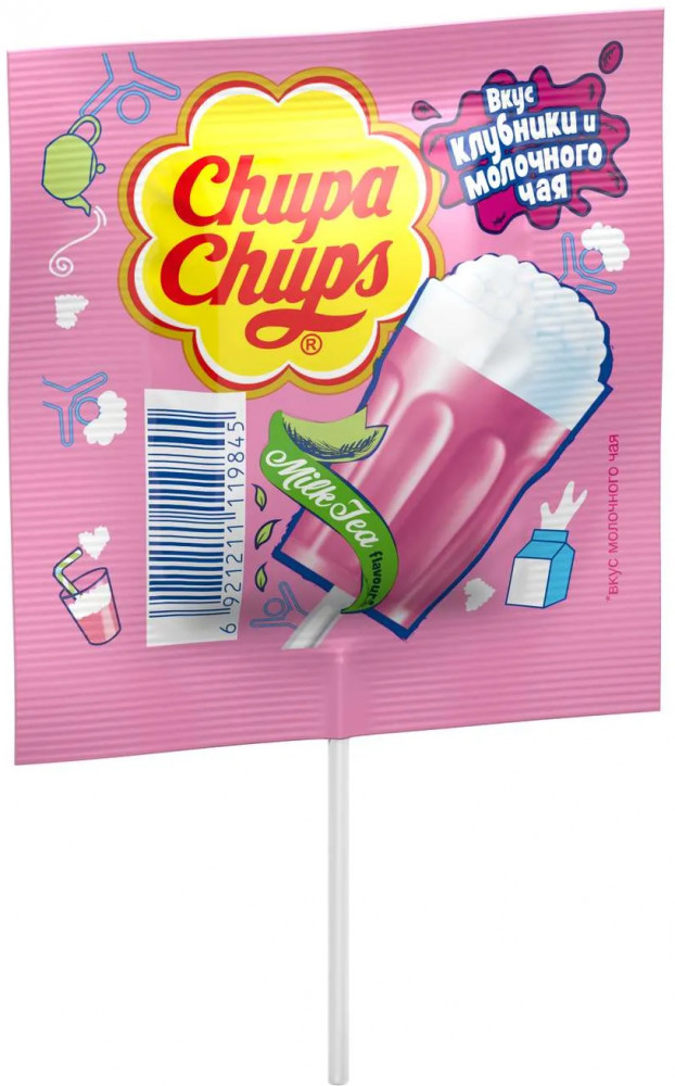 Chupa Chups Карамель на палочке со вкусом клубники и молочного чая «Milk Tea»