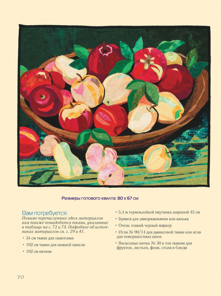 Цветочный пэчворк. Яркие проекты из райского садаВ данный момент этот товар отсутствует в продаже. Возможно, у нас найдется аналогичный или похожий товар здесь. Если вы так же сильно любите рисовать, как и шить, то эта книга для вас! Натюрморты, выполненные аппликациями из ткани, представят перед вами технику пэчворк в новом свете: разноцветные лоскуты в роли холста и красок, а швейная машинка и нитки в роли кистей или мелков откроют для вас новый вид творчества. Нежные персиковые розы, сочные фрукты в вазе, букет анютиных глазок - такие картины внесут изюминку в интерьер вашей квартиры или станут оригинальным и трогательным подарком для ваших друзей и близких, а процесс их создания поможет провести время увлекательно и весело. Подробные описания и схемы сопроводят вас в мир творчества, а галерея работ автора подарит вдохновение для ваших будущих шедевров! |