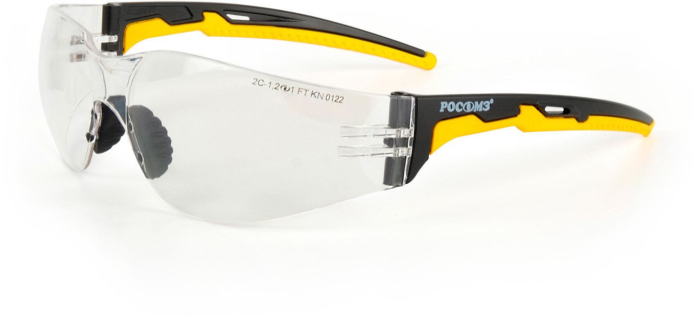 СИЗ глаз для защиты от механических воздействий и неионизирующих излучений, капель и брызг жидкостей. Очки открытые с плотным прилеганием и двухкомпонентным заушником. Защищают от высокоскоростных летящих частиц с низкоэнергетическим ударом 0,84 Дж. Стекло из бесцветного поликарбоната с покрытием Strong Glass (двустороннее твердое покрытие высокого качества устойчивое к запотеванию, истиранию и царапинам, сохраняющее свои свойства при интенсивной эксплуатации в т.ч. при работе с абразивами).