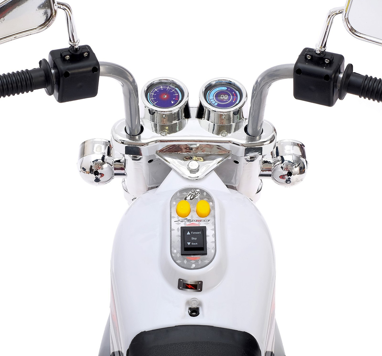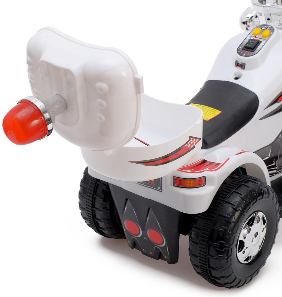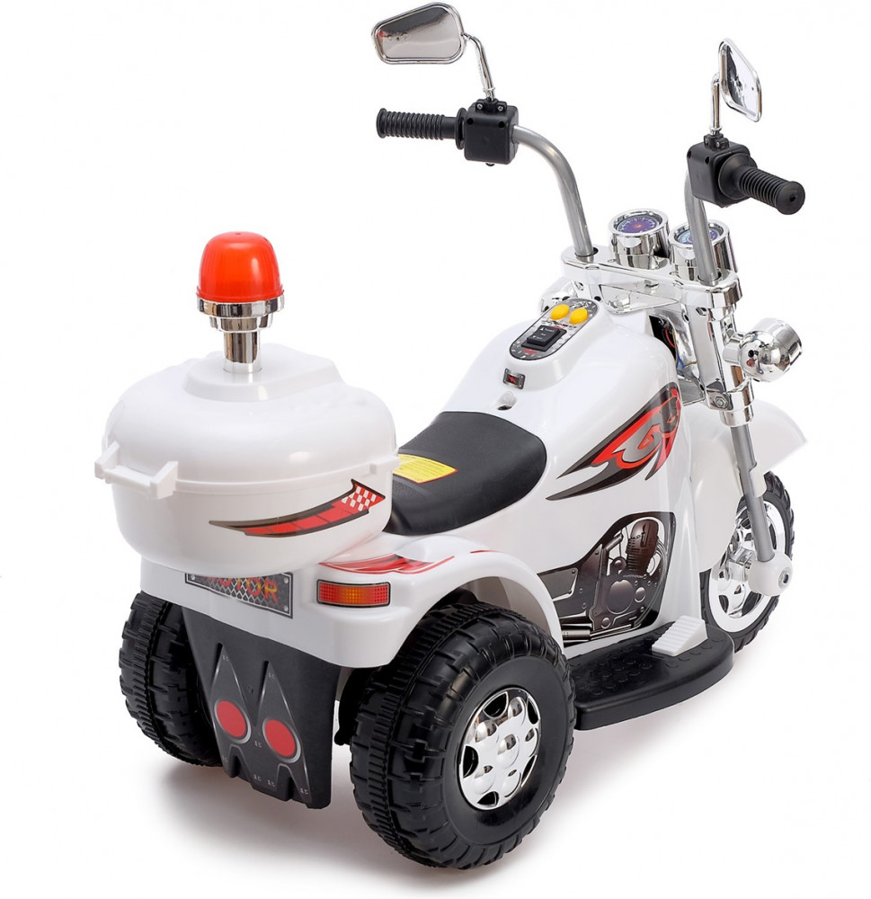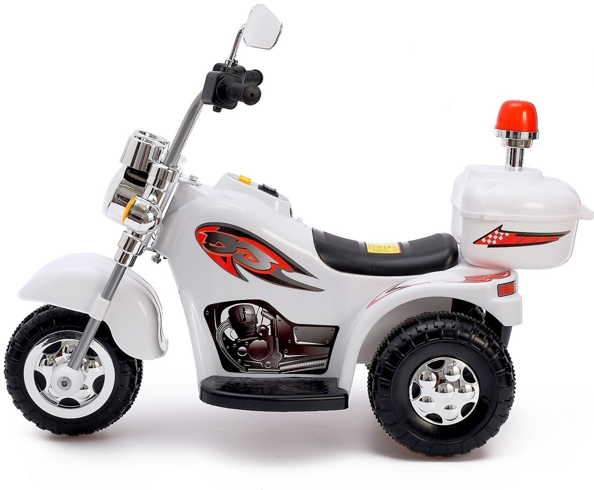 Этот белый детский электромотоцикл в стиле классического чоппера с подсветкой и звуковыми эффектами — идеальный транспорт для маленьких любителей приключений. Стильный цвет, хромированные детали и высокая посадка делают его по-настоящему эффектным! Реалистичные спецэффекты — свет и звук — делают каждую поездку максимально захватывающей. Удобное управление — руль, кнопки управления и педаль газа позволяют ребёнку легко контролировать движение. Прочные пластиковые колёса — широкие устойчивые колёса обеспечивают плавное и безопасное передвижение как в помещении, так и на улице. Долгая работа без подзарядки — аккумулятор даёт возможность кататься 40–60 минут, а полная зарядка занимает 9-10 часов. Стильный кофр и мигалка — функциональный багажник с открывающейся крышкой позволяет возить с собой небольшие игрушки или аксессуары. Этот электромотоцикл — прекрасный выбор для маленького гонщика, который мечтает о скорости и свободе. Высота от пола до сиденья — 28 см. Максимальная нагрузка до 25 кг. Максимальная скорость — 3 км/ч. Аккумулятор — 6V 4.5AH. Заводится с кнопки.