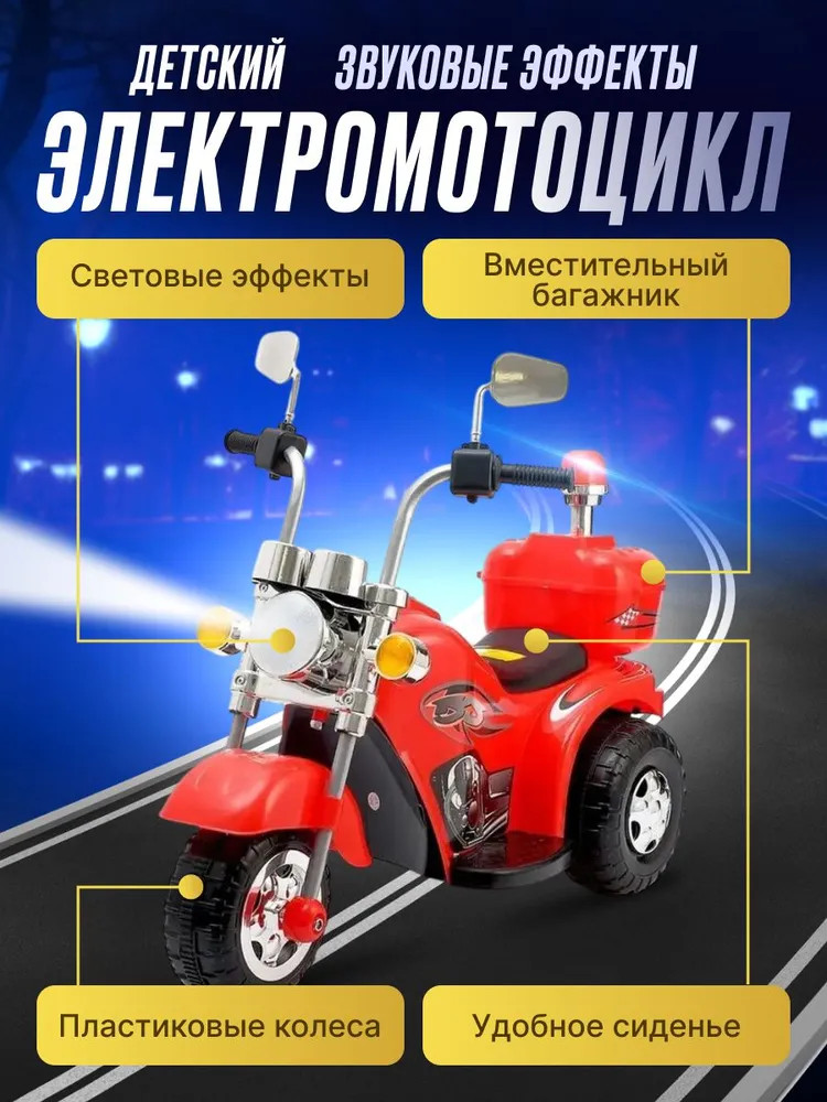 Этот белый детский электромотоцикл в стиле классического чоппера с подсветкой и звуковыми эффектами — идеальный транспорт для маленьких любителей приключений. Стильный цвет, хромированные детали и высокая посадка делают его по-настоящему эффектным! Реалистичные спецэффекты — свет и звук — делают каждую поездку максимально захватывающей. Удобное управление — руль, кнопки управления и педаль газа позволяют ребёнку легко контролировать движение. Прочные пластиковые колёса — широкие устойчивые колёса обеспечивают плавное и безопасное передвижение как в помещении, так и на улице. Долгая работа без подзарядки — аккумулятор даёт возможность кататься 40–60 минут, а полная зарядка занимает 9–10 часов. Стильный кофр и мигалка — функциональный багажник с открывающейся крышкой позволяет возить с собой небольшие игрушки или аксессуары. Этот электромотоцикл — прекрасный выбор для маленького гонщика, который мечтает о скорости и свободе. Высота от пола до сиденья — 28 см. Максимальная нагрузка до 25 кг. Максимальная скорость — 3 км/ч. Аккумулятор — 6V 4.5AH. Заводится с кнопки.
