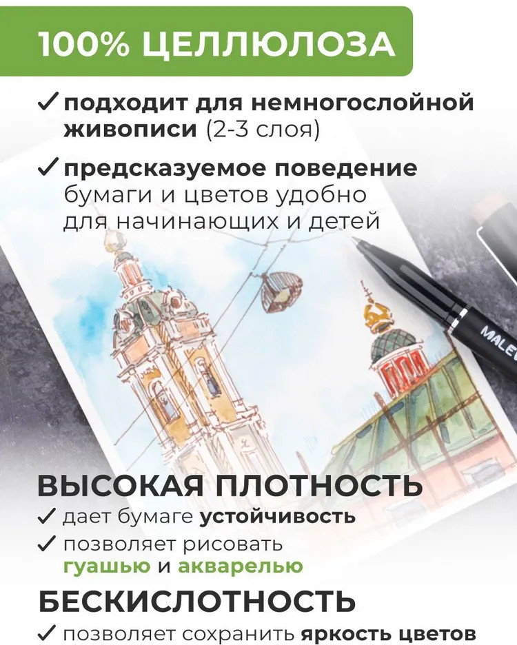 МалевичЪ Набор бумаги для рисования открыток-30% +16