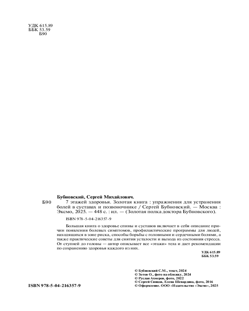 💳 Оплатить за товар можно при получении 🇰🇿 Есть бесплатная доставка по Казахстану от 1 дня 🎁 Копите бонусы с каждой покупки Серия: Золотая полка доктора Бубновского Сергей Бубновский — доктор медицинских наук, профессор, автор безоперационных методов лечения позвоночника и суставов, создатель нового направления в медицине — кинезитерапии, в которой сам больной активно участвует в своем выздоровлении благодаря внутренним резервам и пониманию своего тела. |