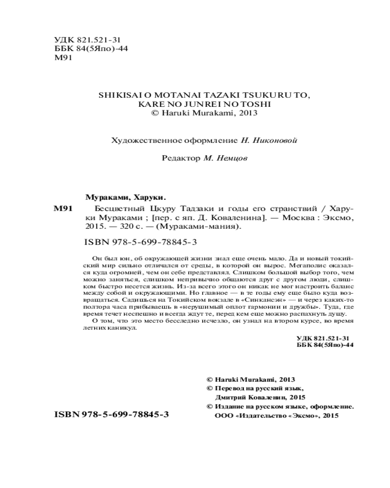 Бесцветный Цкуру Тадзаки и годы его странствий-20% +41