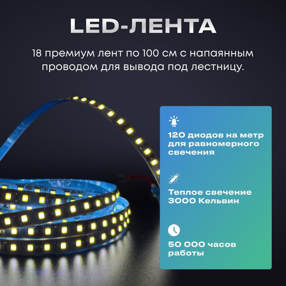 UZENS Подсветка для лестницы с датчиком движения на 25 ступеней, теплый свет