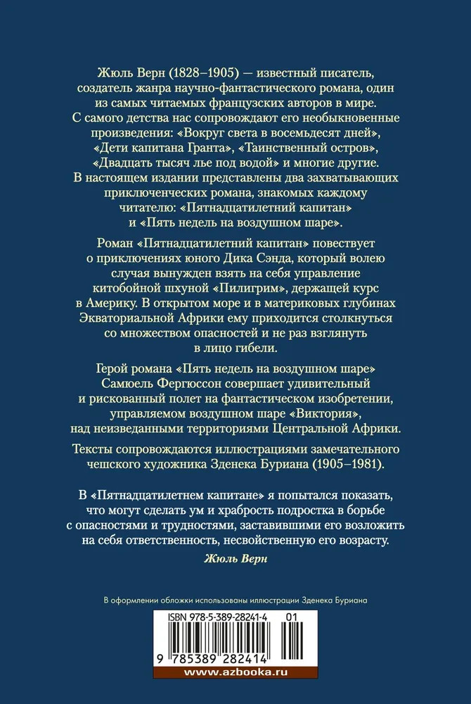 💳 Оплатить за товар можно при получении 🇰🇿 Есть бесплатная доставка по Казахстану от 1 дня 🎁 Копите бонусы с каждой покупки Серия: Иностранная литература. Большие книги Жюль Верн (1828-1905) — известный писатель, создатель жанра научно-фантастического романа, один из самых читаемых французских авторов в мире. С самого детства нас сопровождают его необыкновенные произведения: «Вокруг света в восемьдесят дней», «Дети капитана Гранта», «Таинственный остров», «Двадцать тысяч лье под водой» и многие другие. В настоящем издании представлены два захватывающих приключенческих романа, знакомых каждому читателю: «Пятнадцатилетний капитан» и «Пять недель на воздушном шаре». |