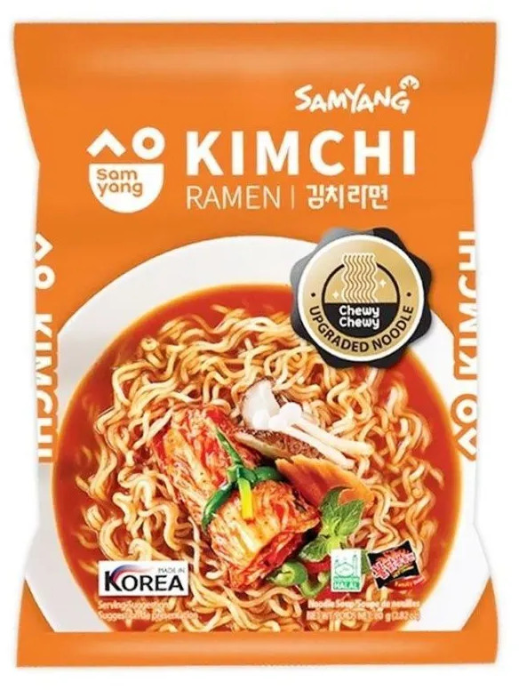 Лапша (86,2%): пшеничная мука, рафинированное пальмовое масло, модифицированный крахмал тапиоки, рафинированная соль, эмульгатор (соевый лецитин), регулятор кислотности (карбонат калия безводный E501i, карбонат натрия e500, фосфат натрия двухосновный E339ii, лимонная кислота E330, эмульгатор лецитин E322 i), загуститель (гуаровая камедь (e412)), масло со вкусом зеленого чая (идентичное натуральному). Суп (13,8%): порошок кимчи, порошок соевого соуса, белый сахар, смешанный пряный порошок (перец чили, чеснок, лук), дрожжевой порошок, сушеный бок-чой, порошок красного перца, регулятор кислотности (dl-яблочная кислота), сушеные хлопья кимчи (капуста напа, соль, порошок красного перца, чеснок, имбирь), сушеный чеснок, черный перец порошок, масло семян красного перца, перец, ароматизатор чеснока, карамельный порошок. Содержит: пшеницу, глютен, сою.