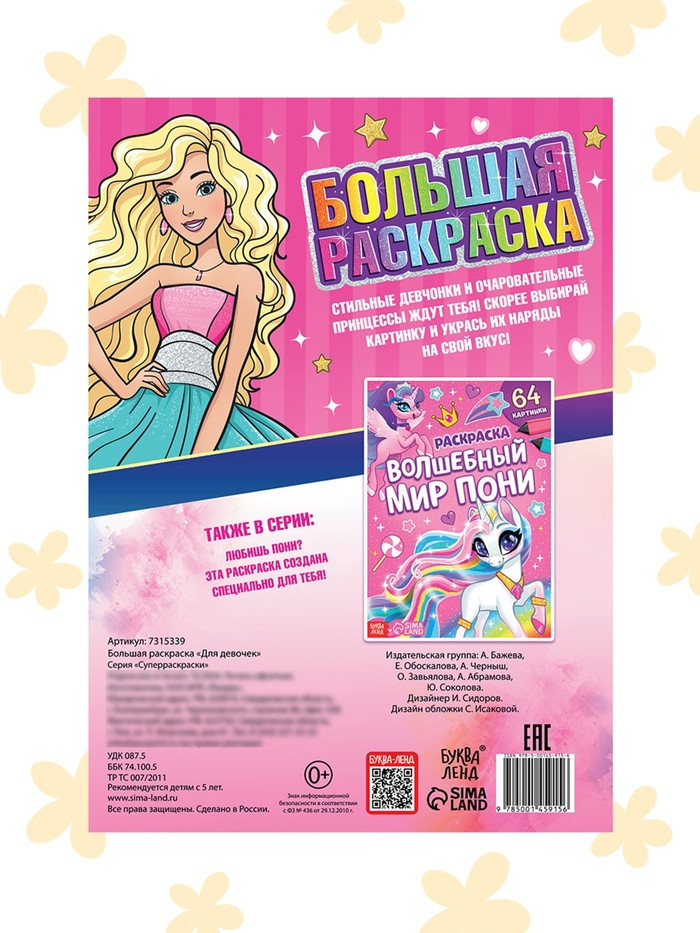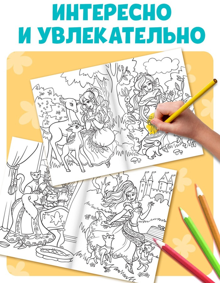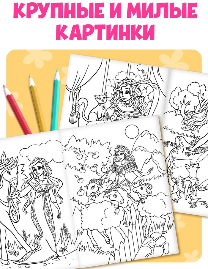 Девочка с удовольствием будет раскрашивать, а изображения прекрасных принцесс и милых животных сделают творческие занятия ещё более интересными. Раскрашивая, ребёнок не только учится уверенно держать карандаш в руке, но и развивает наблюдательность, мелкую моторику, воображение и художественный вкус! Для детей от 3 лет. |