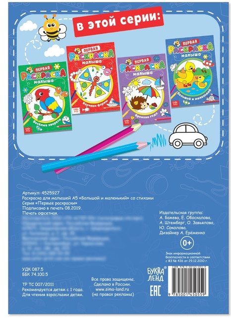 💳 Оплатить за товар можно при получении 🇰🇿 Есть бесплатная доставка по Казахстану от 1 дня 🎁 Копите бонусы с каждой покупки Раскраска для малышей «Большой и маленький» создана специально для детей, которые только начинают осваивать творчество. Внутри — крупные изображения, которые удобно раскрашивать, страницы подходят для использования карандашей. Каждый рисунок сопровождается весёлым стишком, что делает процесс ещё интереснее. Компактный формат позволяет легко брать раскраску с собой. Такое занятие помогает ребёнку изучать формы, предметы и цвета, развивает мелкую моторику, готовит руку к письму, тренирует усидчивость, внимание и формирует эстетический вкус. |