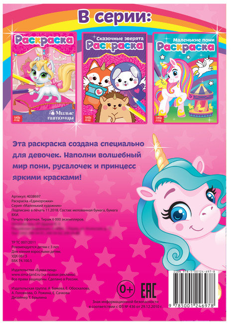 Раскраска для девочек «Единорожки»В данный момент этот товар отсутствует в продаже. Возможно, у нас найдется аналогичный или похожий товар здесь. Раскраска формата А5 — то, что нужно, для первых творческих экспериментов. Удобный размер подойдёт для маленьких детских ручек, ребёнок не устанет, пока будет разрисовывать картинки. Крупные иллюстрации рассчитаны на детскую ручку. А персонажи настолько милые, что начинающему художнику тут же захочется их расцветить. |