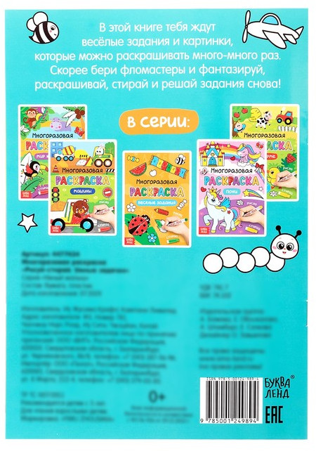 Раскраска детская с маркерами «Рисуй-стирай. Умные задачки»В данный момент этот товар отсутствует в продаже. Возможно, у нас найдется аналогичный или похожий товар здесь. Раскраска «Рисуй-стирай. Умные задачки» — это идеальный способ для детей не только развлекаться, но и учиться. В комплекте идут маркеры, с помощью которых малыш может рисовать и стирать свои рисунки столько раз, сколько захочет. 12 страниц с увлекательными заданиями помогут развить внимание, логику и творческие способности. |