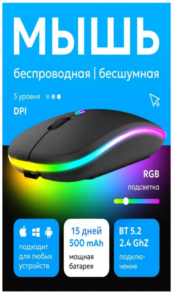 Отзывы «Мышь беспроводная с подсветкой аккумуляторная»