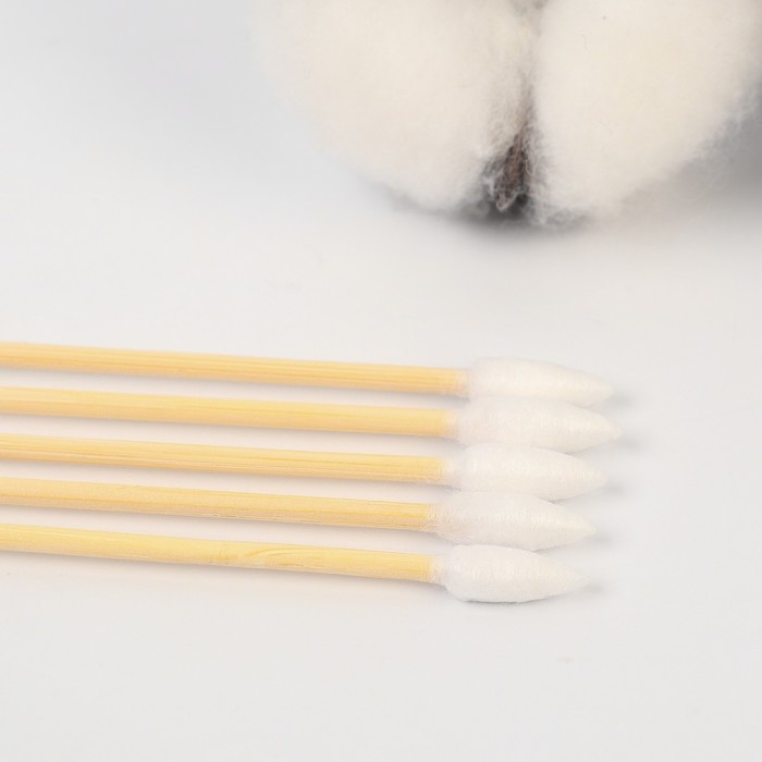 Ватные ушные палочки изготовлены из 100% хлопка, имеют прочную палочку-основу , на которой вата надежно закреплена. Абсолютно гладкая хлопковая поверхность не позволяет отдельным волокнам отслаиваться, не оставляет ворсинок на очищаемой поверхности. Может использоваться как для работы с макияжем, так и для для гигиенических целей.
