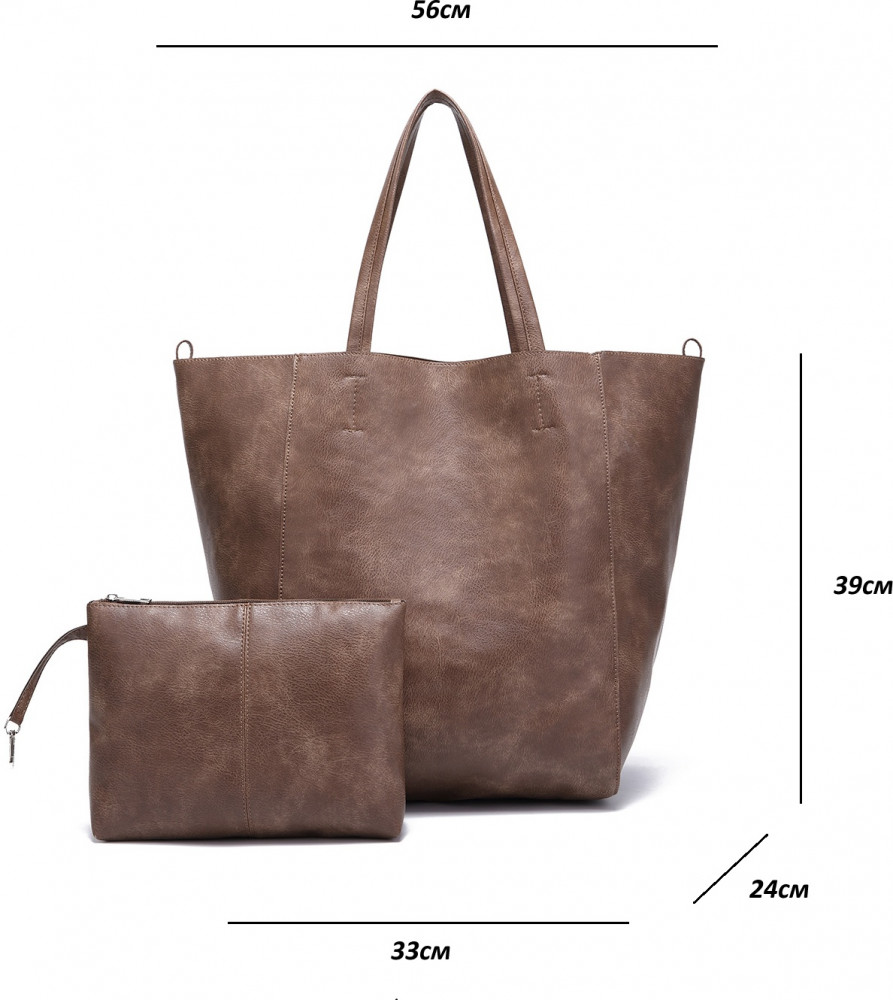 Комплект из большой сумки-тоут и косметички — универсальная сумка на каждый день. Подходит для женщин и для мужчин. Эта вместительная сумка-тоут сочетает в себе стиль, функциональность и практичность. Выполненная из прочного материала с приятной текстурой, она идеально подойдёт для разных жизненных ситуаций: работы, деловых встреч, прогулок, покупок и учёбы. Высококачественная экокожа, уникальный и лаконичный дизайн позволяют легко комбинировать сумку с любым гардеробом — от повседневного до офисного.