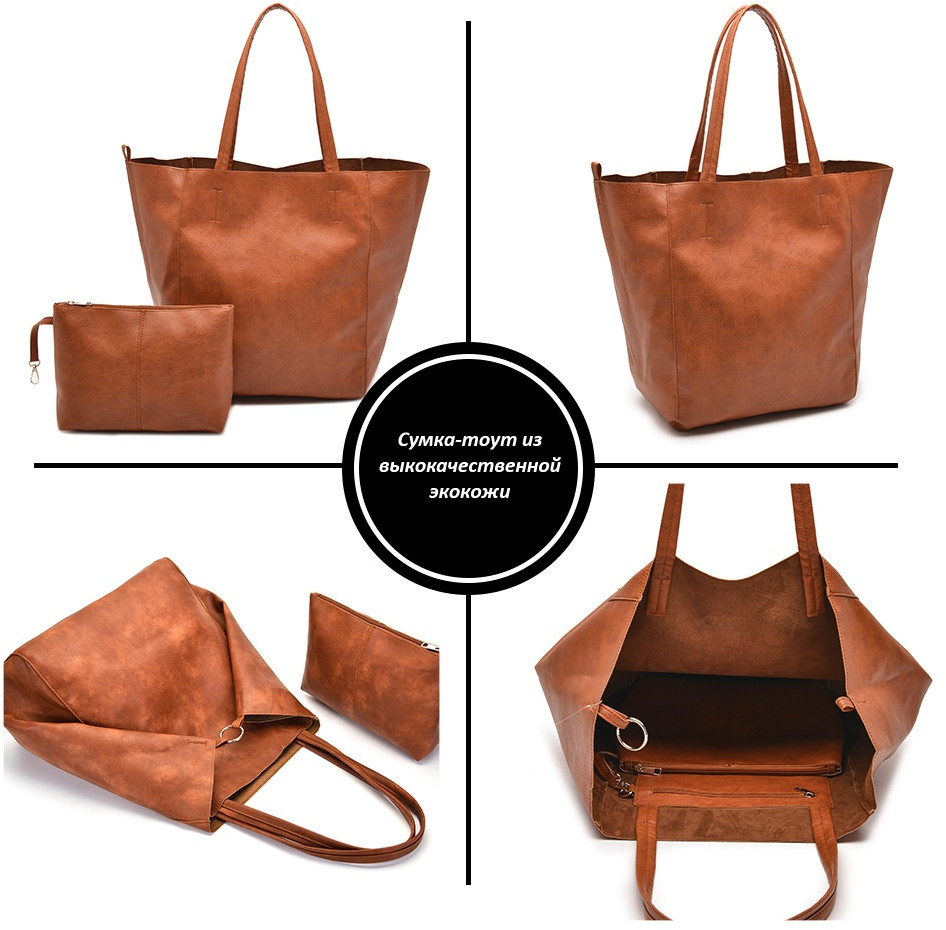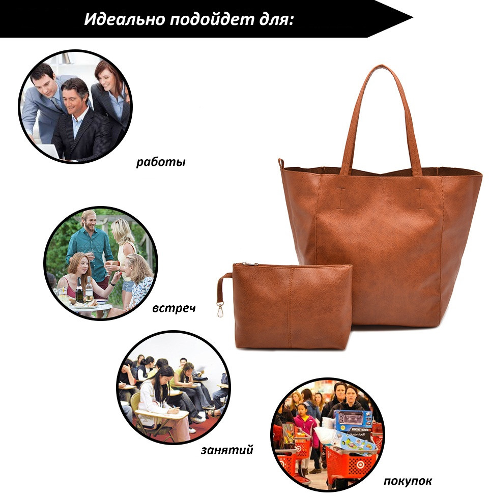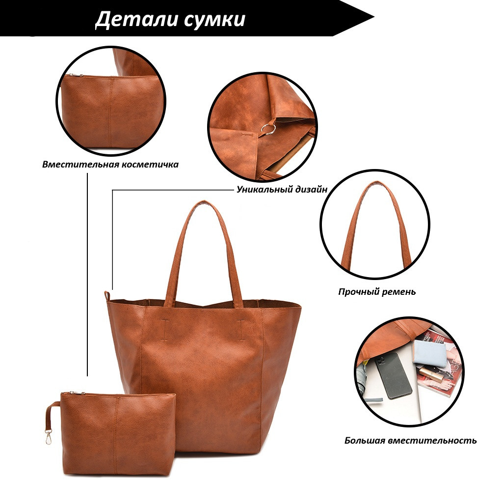 Комплект из большой сумки-тоут и косметички — универсальная сумка на каждый день. Подходит для женщин и для мужчин. Эта вместительная сумка-тоут сочетает в себе стиль, функциональность и практичность. Выполненная из прочного материала с приятной текстурой, она идеально подойдёт для разных жизненных ситуаций: работы, деловых встреч, прогулок, покупок и учёбы. Высококачественная экокожа, уникальный и лаконичный дизайн позволяют легко комбинировать сумку с любым гардеробом — от повседневного до офисного.