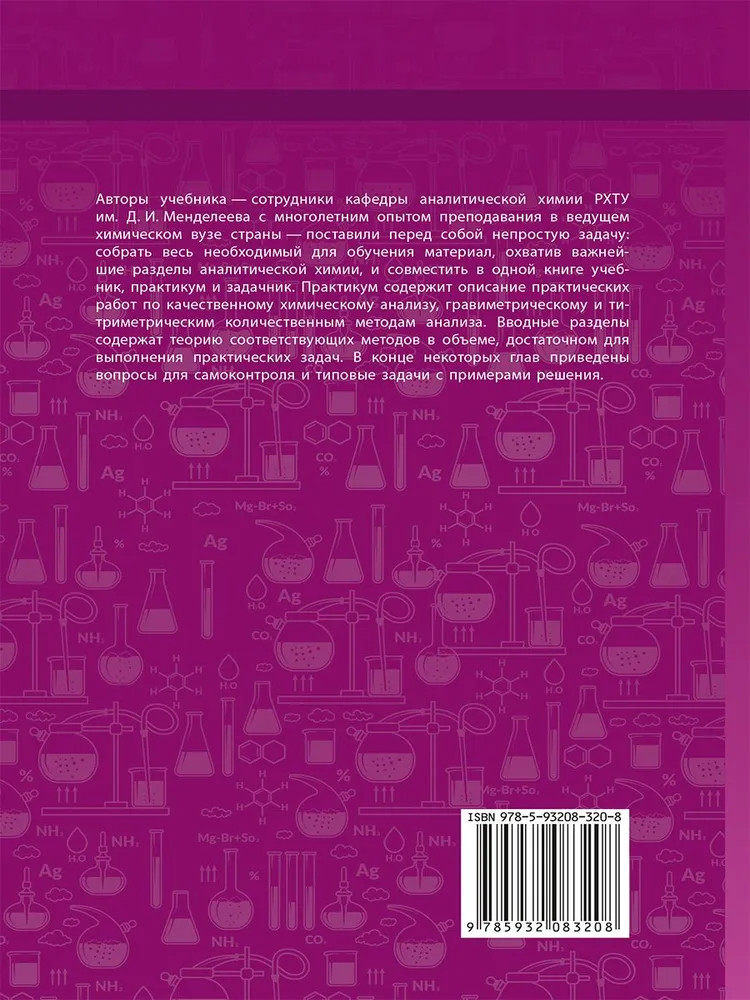 💳 Оплатить за товар можно при получении 🇰🇿 Есть бесплатная доставка по Казахстану от 1 дня 🎁 Копите бонусы с каждой покупки Серия: Учебник для высшей школы В настоящем издании для химико-технологических и других вузов, в которых курс аналитической химии является частью общехимической подготовки специалистов, рассмотрены химические методы анализа. Приведена классификация методов количественного и качественного химического анализа: химических и инструментальных. Отдельная глава посвящена метрологической характеристике методов аналитической химии и результатов анализа. Даны описания практических работ по анализу неорганических и органических объектов. Включены вопросы и задачи для самостоятельной работы студентов с примерами их решения. Таким образом, в одной книге собраны учебник, практикум и задачник. |
