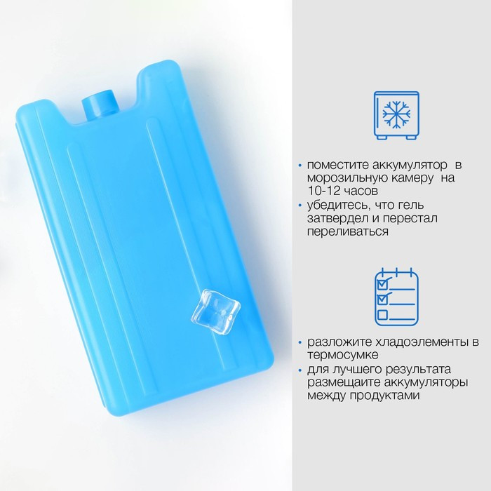 💳 Оплатить за товар можно при получении 🇰🇿 Есть бесплатная доставка по Казахстану от 1 дня 🎁 Копите бонусы с каждой покупки Аккумулятор холода — это герметичный контейнер с теплоёмким гелевым раствором. Аккумулятор холода предназначен для поддержания низкой температуры в контейнерах из вспененных материалов, сумках-холодильниках и термопакетах. Он равномерно распределяет холод внутри термосумки, не протекает, обеспечивает долговременное охлаждение продуктов. Положите резервуар в морозильную камеру до полного затвердевания (рекомендуется на 10–12 часов). Там изделие запасётся необходимым количеством холода, которое затем передаётся продуктам. После использования ополосните контейнер водой и протрите насухо. Храните изделие в морозильной камере или в другом сухом месте. Изготовлено из безвредных материалов. Предназначено для многократного использования (при условии сохранения непроницаемости корпуса). Подходит для любого вида продуктов. Срок эксплуатации не ограничен (при условии, что герметичность оболочки не нарушена). |