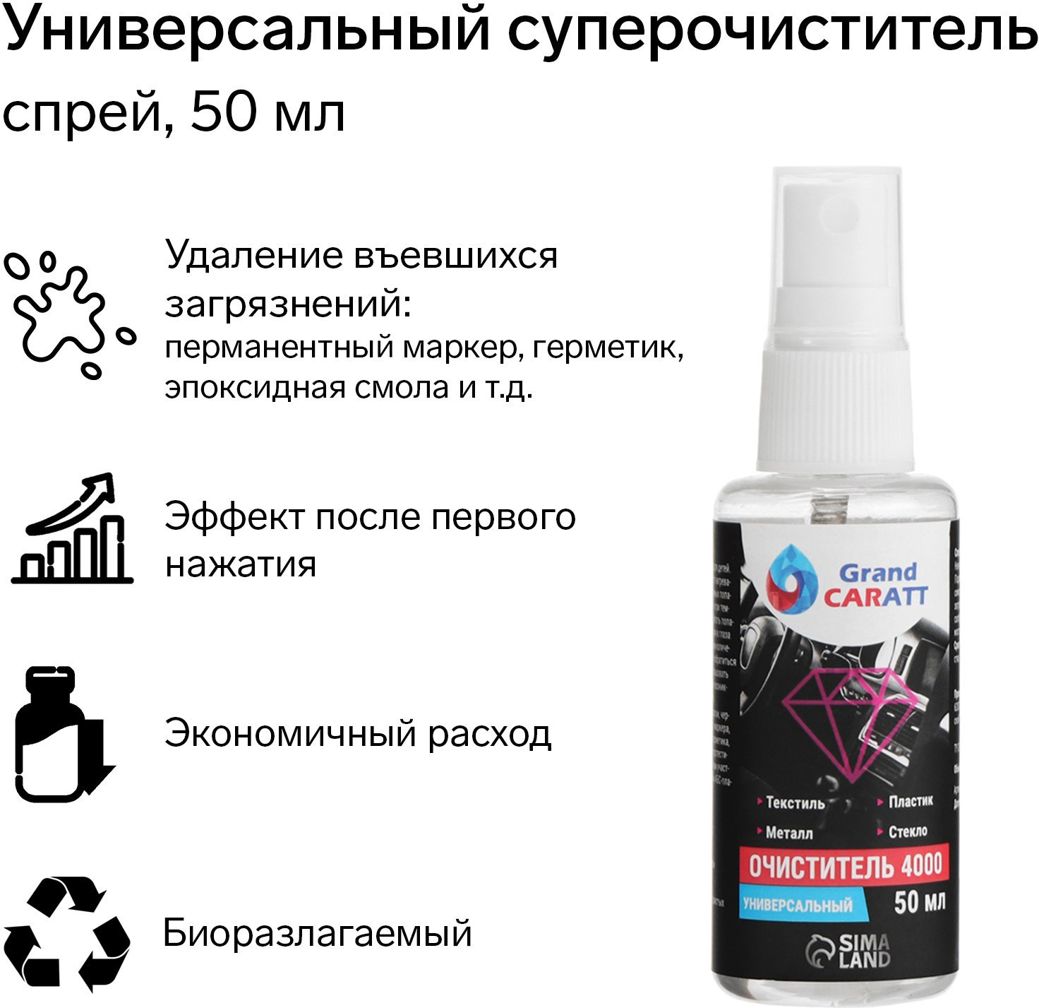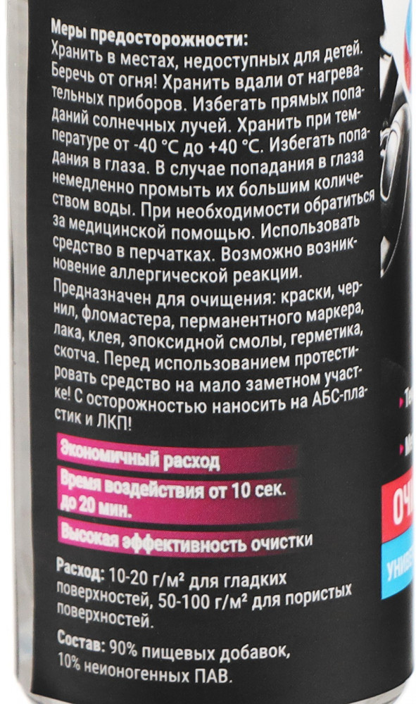 Универсальный биоразлагаемый очиститель. Данный очиститель отлично подойдет для очищения поверхностей от различных загрязнений. Применяется для очищения мебели (столы, стулья), паркета, линолеума, стекла, оконного профиля, пластика ПВХ, магнитно-маркерных досок, а также, инструментов и кистей. Очищает различные виды красок (акриловые, масляные, алкидные), чернила от ручки, следы фломастера, маркера, а также двухсторонний бумажный скотч, наклейки, эпоксидную смолу.