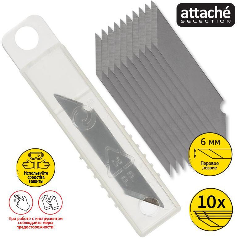 Attache Selection Набор лезвий для ножаВ данный момент этот товар отсутствует в продаже. Возможно, у нас найдется аналогичный или похожий товар здесь. Набор запасных перовых лезвий Attache Selection. Используются для резки всех видов бумаги, пленки, обоев, кожи. |