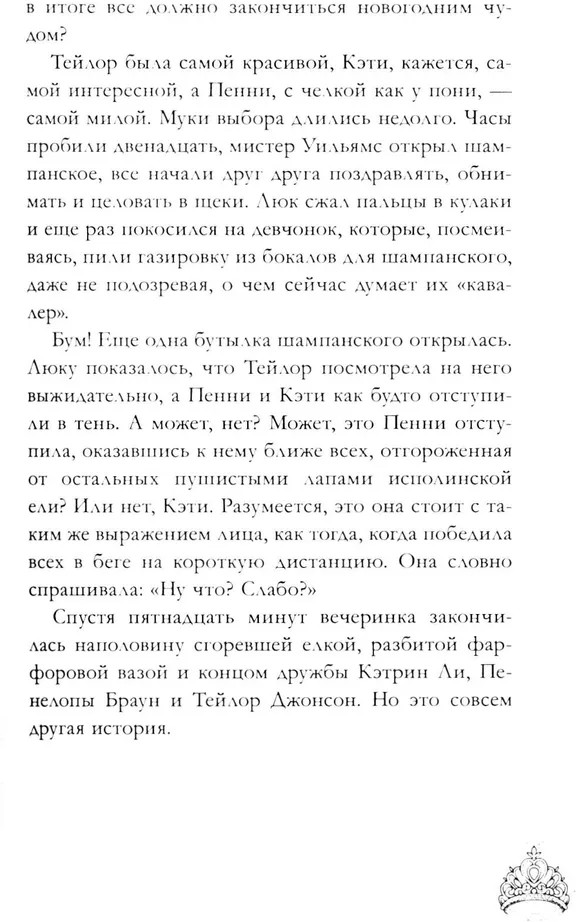 Когда-то Тейлор, Пенни и Кэтрин были подругами. Все изменила сгоревшая в Новый год елка и омела под потолком в доме Люка Уилсона. С тех пор прошло шесть лет. Пенни все так же влюблена в друга детства без надежды на взаимность. Ведь он звезда баскетбола, а она всего лишь заурядная девушка, поющая в хоре.